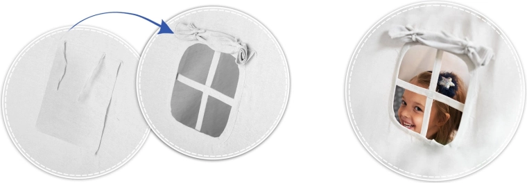 Setul include o saltea groasă și moale cu finisaj antiderapant, ce poate fi folosită și separat ca covoraș. Trei perne cu forme jucăușe (norișor, stea și model) sporesc confortul și decorațiunea camerei copilului. Detaliile practice, precum clapa frontală rabatabilă și fereastra cu roletă, susțin distracția și totodată aerisirea.