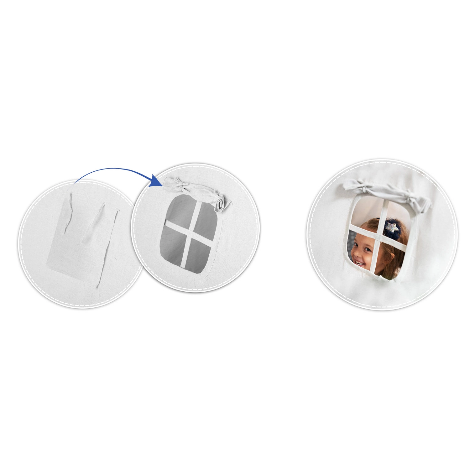 Fereastra cu roletă și ușa rabatabilă îmbunătățesc aerisirea și vizibilitatea. Asamblarea și plierea durează doar câteva clipe, iar teepee-ul se mută ușor oriunde este nevoie.