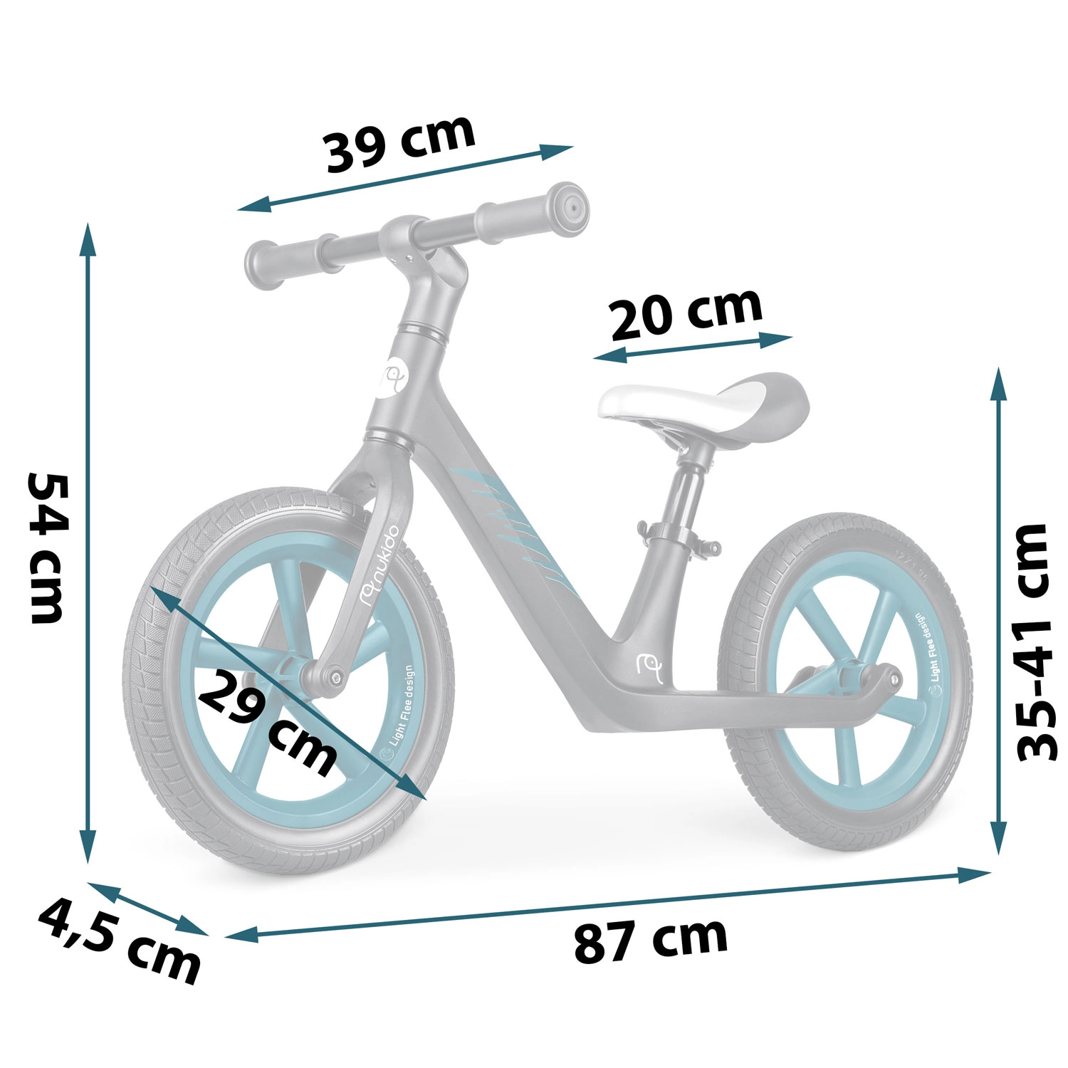 NUKIDO Light Flee este prima bicicletă fără pedale ideală pentru dezvoltarea coordonării, echilibrului și încrederii. Construcția ușoară și înălțimea joasă facilitează urcarea și manevrarea, iar anvelopele fără cameră din spumă EVA asigură o rulare lină și fără întreținere pe orice suprafață.