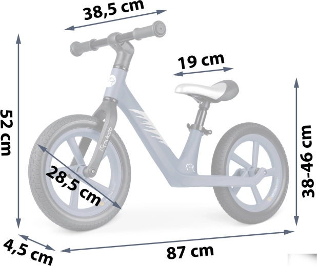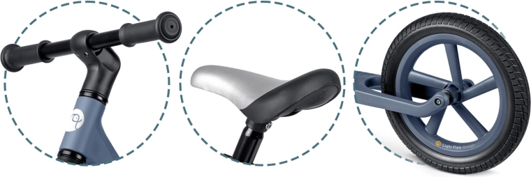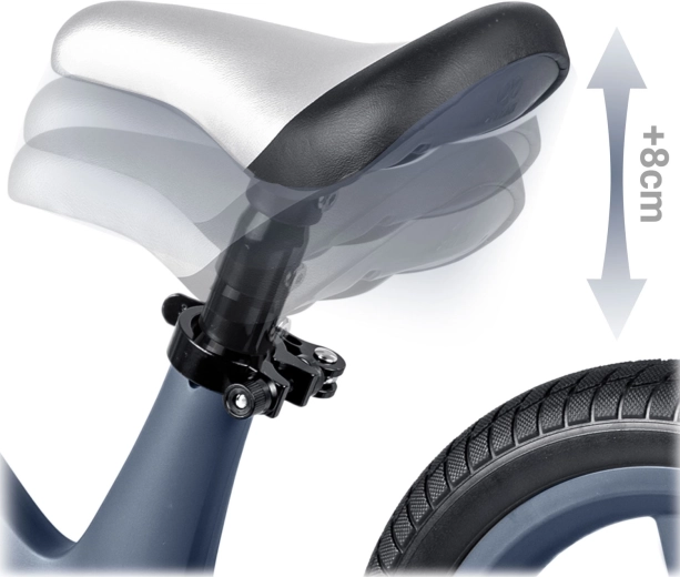 Datorită înălțimii șeii reglabile lin (cca 35–41 cm), bicicleta de echilibru crește odată cu copilul și asigură o poziție ideală în fiecare etapă a dezvoltării. Roțile EVA de 12" atenuează denivelările și nu necesită întreținere, iar mânerele din cauciuc cu opritoare protejează mâinile copilului și oferă siguranță la direcționare.