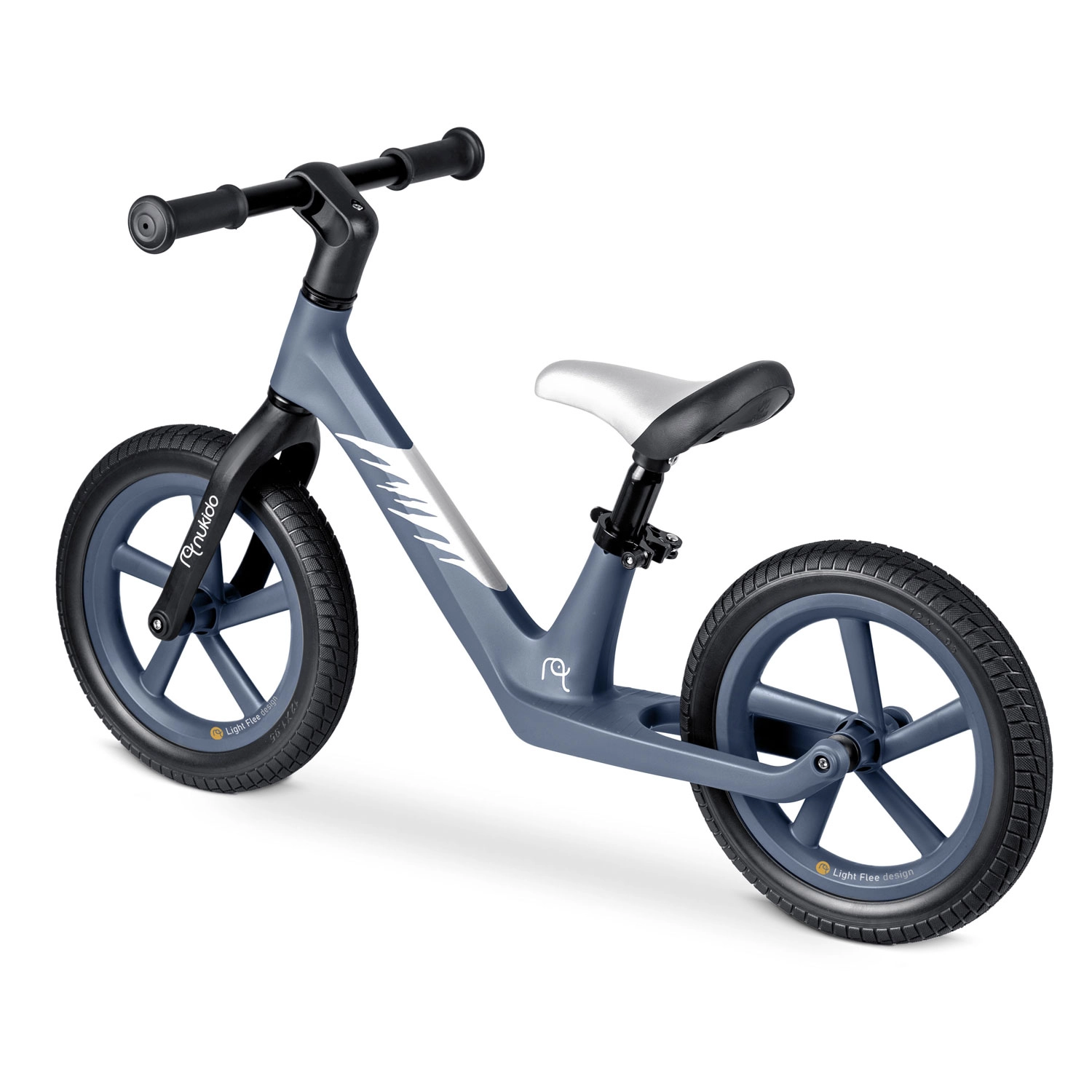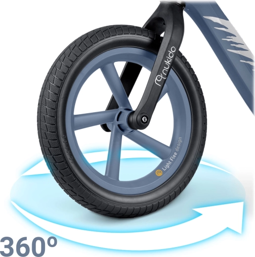 Bicicleta de echilibru ultra-ușoară NUKIDO Light Flee îi ajută pe copii să își dezvolte echilibrul și coordonarea înainte de prima bicicletă cu pedale. Are cadru din nailon rezistent, înălțime reglabilă a șeii pe o plajă de 8 cm, șea moale, ergonomică și roți de 12" din EVA, imposibil de perforat pentru o plimbare lină și sigură. Datorită mânerelelor antiderapante cu opritoare, prinderea este sigură, iar bicicleta este super ușoară – doar 2,8 kg, fiind ușor de manevrat și transportat.