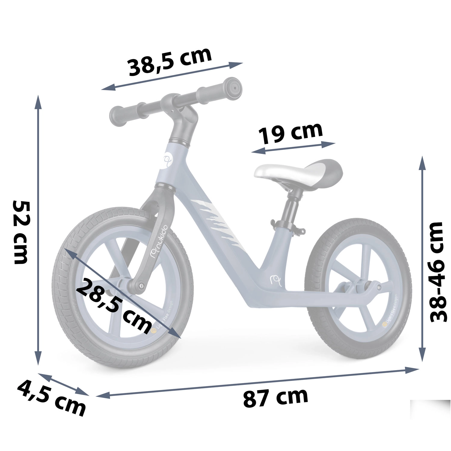 NUKIDO Light Flee este un prim pas excelent către mersul pe bicicletă. Copiii își antrenează natural echilibrul, își îmbunătățesc concentrarea și capătă încredere în sine, ceea ce facilitează semnificativ trecerea ulterioară la o bicicletă cu pedale. Construcția ușoară și urcarea joasă îi ajută pe cei mici să înceapă în siguranță și să progreseze rapid.