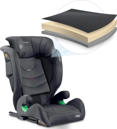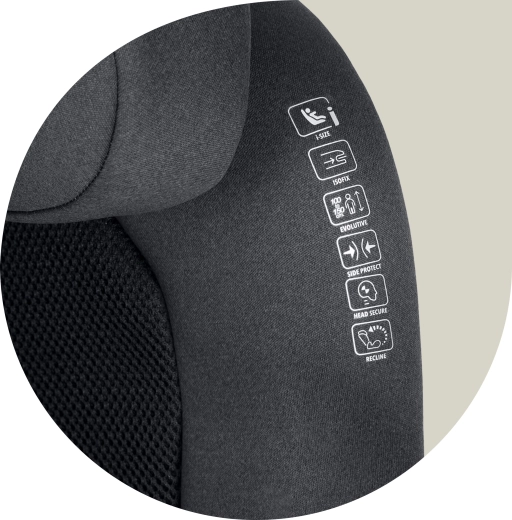 Panourile laterale întărite absorb energia impactului, în timp ce căptușeala multistrat și cele 2 trepte de înclinare sporesc confortul în timpul călătoriei.