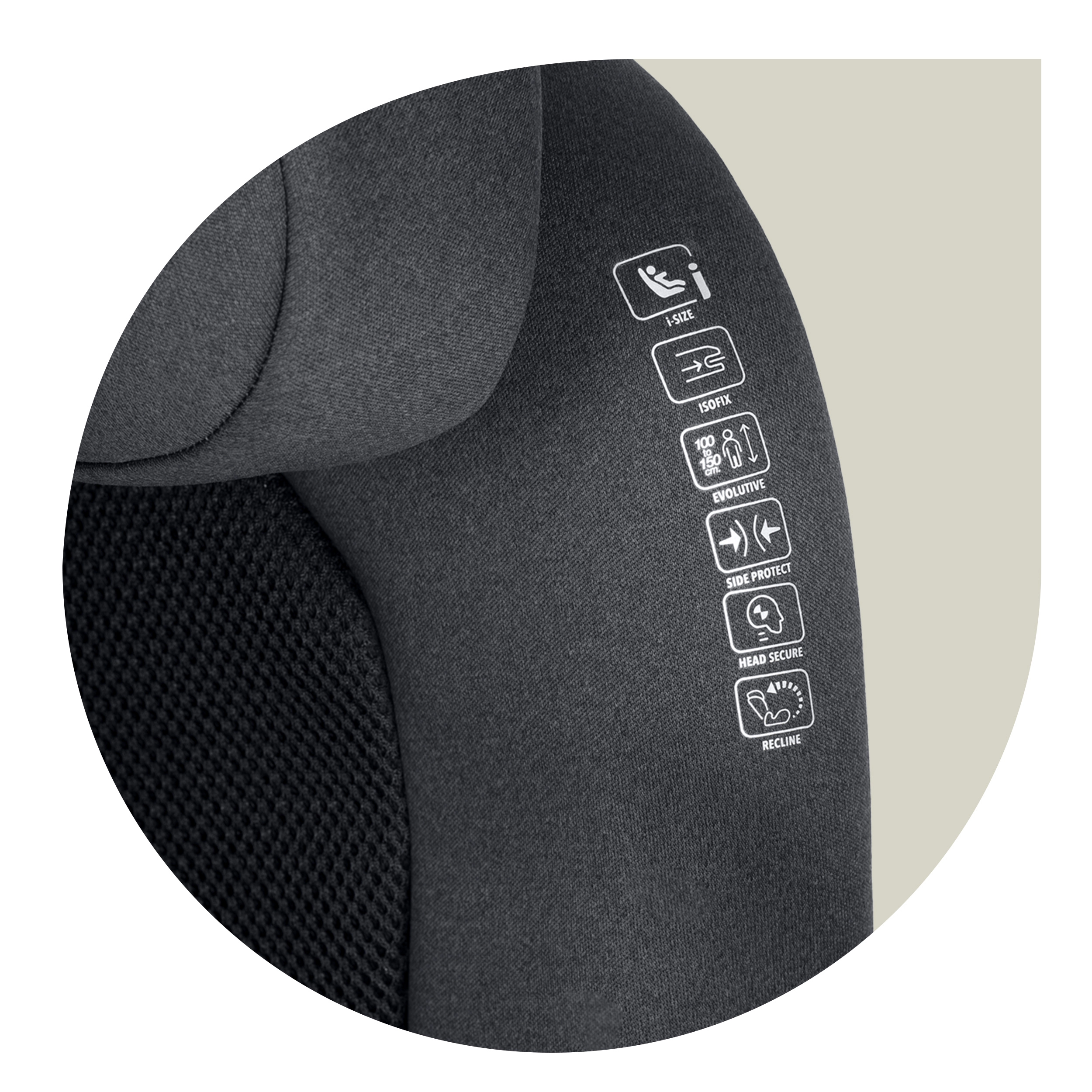 Instalare rapidă și întotdeauna corectă datorită ISOFIX. Respectă strictul standard ECE R129 (i-Size) pentru copii cu înălțimea 100–150 cm.