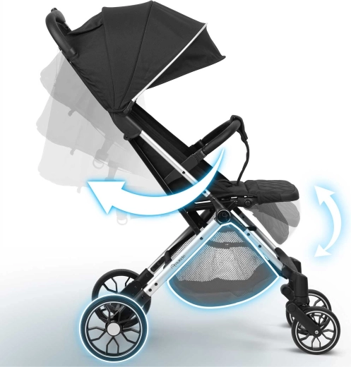 Pentru confortul micuțului pasager, nu lipsesc spătarul reglabil în mai multe poziții până la somn, suportul de picioare ajustabil și șezutul moale, bine căptușit. Capotina extensibilă protejează de soare, vânt și ploaie ușoară și poate fi adaptată fie că doarme, fie că privește lumea. Coșul practic de sub șezut găzduiește tot ce este necesar pentru plimbare.