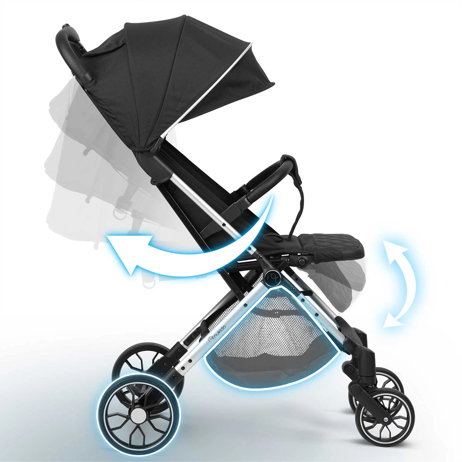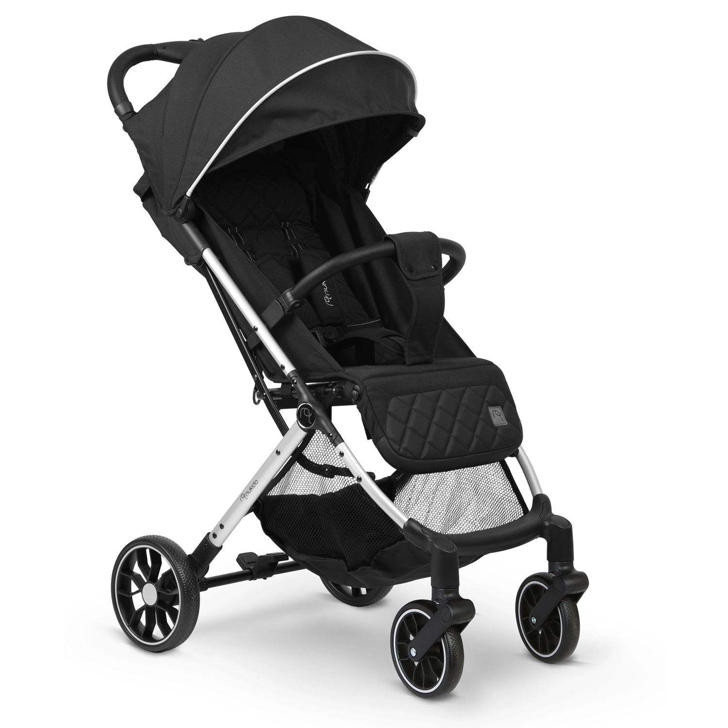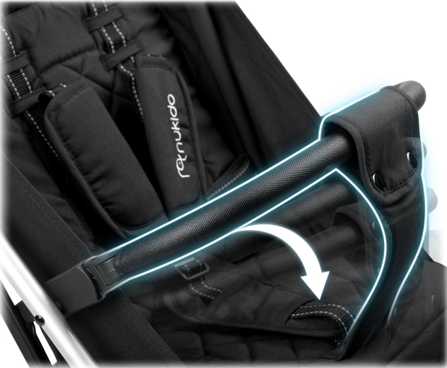 Nukido Paseo îmbină confortul copilului cu practicitatea pentru părinți. Construcția robustă, dar ușoară, se potrivește în portbagaj și chiar ca bagaj de mână datorită plierii rapide. Roțile față pivotante cu suspensie facilitează manevrarea în oraș, în timp ce roțile spate mai mari fac față și trotuarelor mai denivelate. Siguranța este asigurată de centura în 5 puncte cu pernițe moi și frâna de parcare fiabilă.
