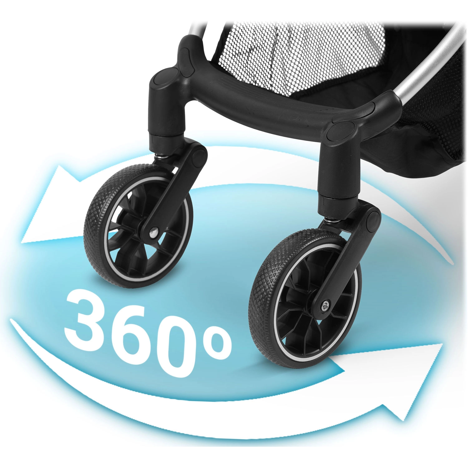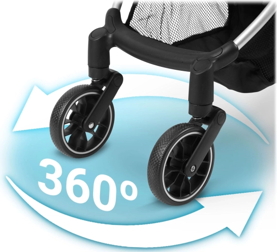 - Rulare fără zdruncinături: roți față 360° cu suspensie și roți spate mari pentru stabilitate.