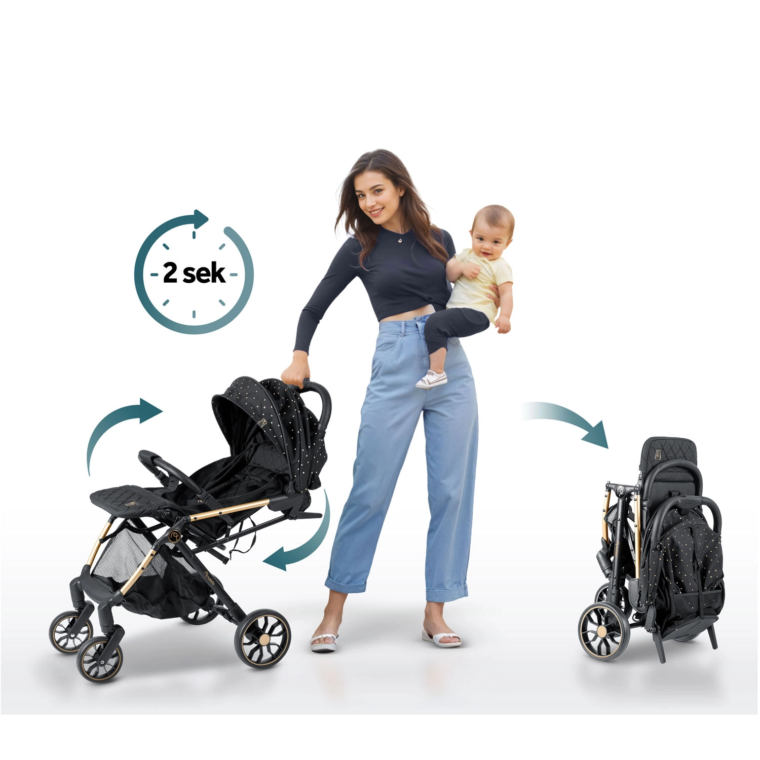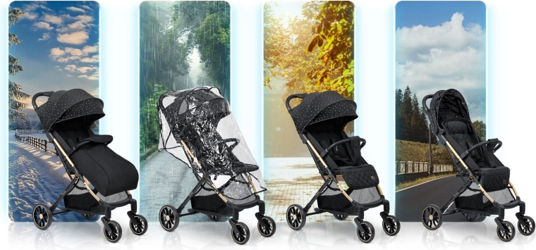 - Confort pe orice vreme: capotină cu protecție UV și ploaie, în pachet husă de ploaie și acoperitoare pentru picioare.