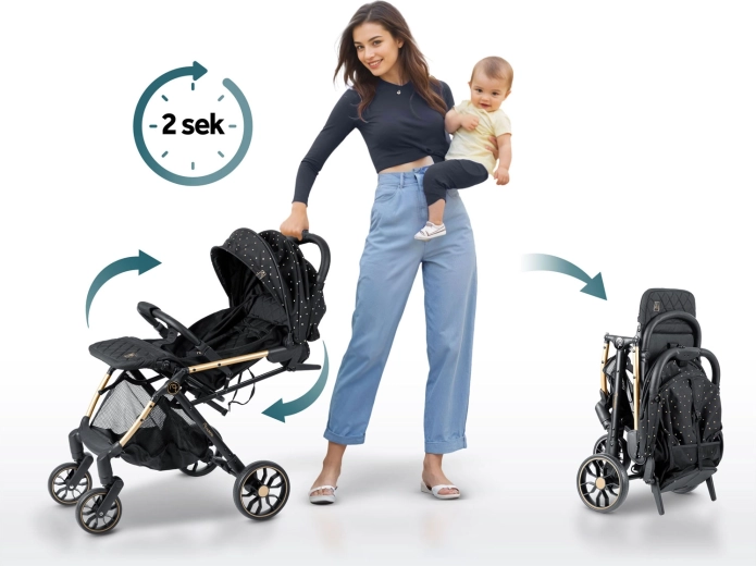 Căruciorul ușor și rezistent Nukido Paseo este partenerul de încredere pentru plimbările zilnice și călătoriile cu copii până la 36 de luni. Oferă pliare rapidă cu o singură mână în 2 secunde, roți față pivotante 360° cu suspensie, roți spate mari pentru teren variat și centură de siguranță în 5 puncte. Datorită dimensiunilor compacte după pliere încape în portbagaj și este potrivit chiar și pentru avion. Capotină extensibilă cu protecție împotriva ploii și UV, spătar reglabil până la poziția orizontală și suport de picioare ajustabil asigură confortul copilului pe orice vreme.