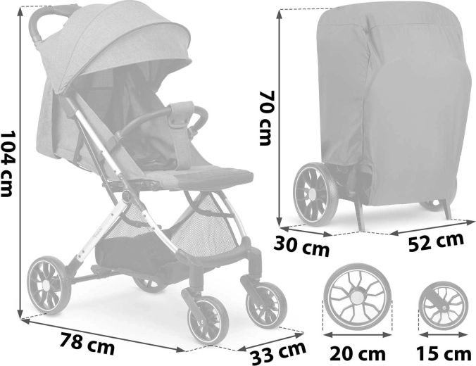 Căruciorul Nukido Paseo se pliază cu o singură mână în câteva clipe până la dimensiunea unui bagaj de mână. Îl depozitați ușor în portbagajul mașinii și îl puteți lua și în avion. Nu lipsesc mânerul practic pentru tras și husa de protecție incluse în pachet.