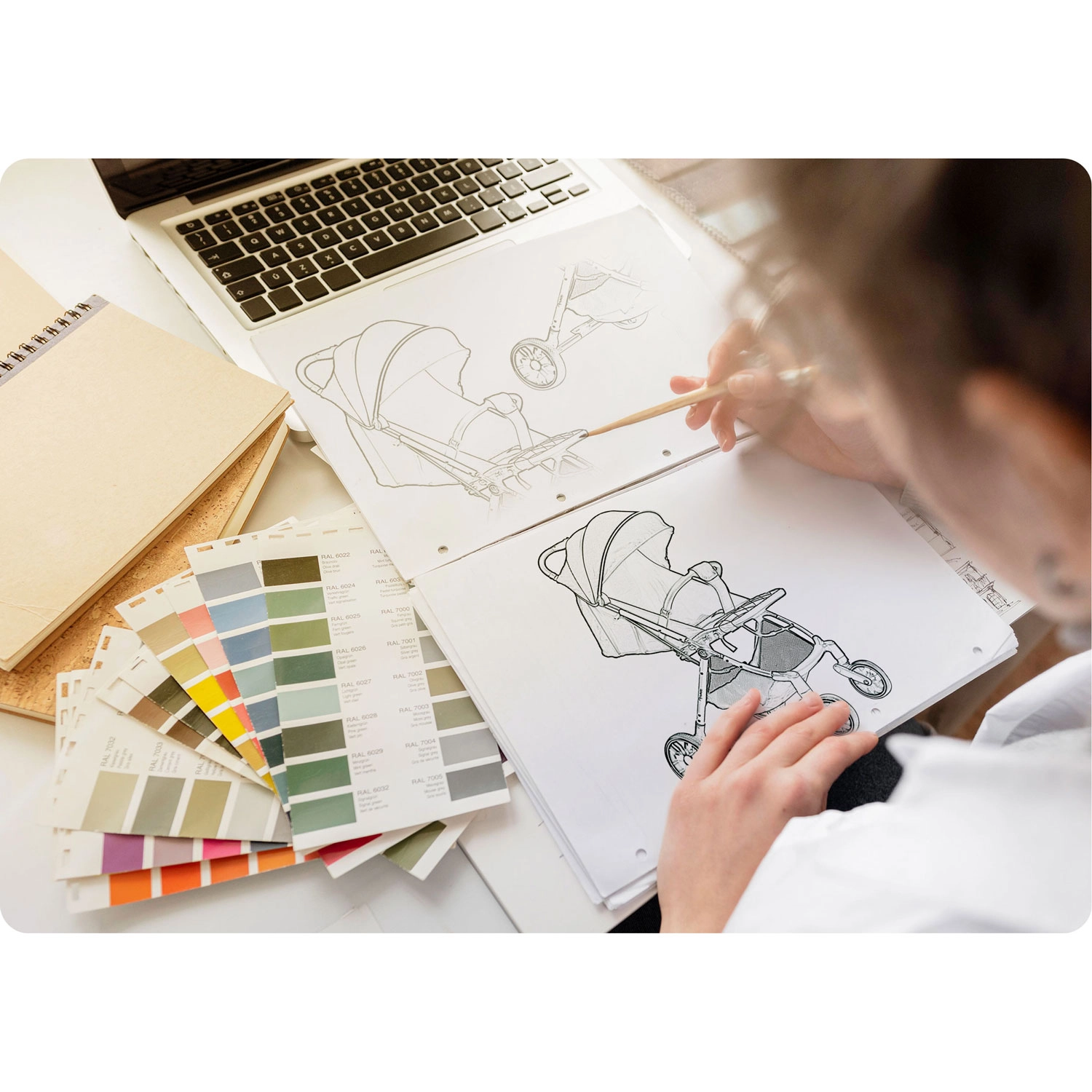 - Deplasare confortabilă: roți față 360° cu suspensie, roți spate mari pentru siguranță și stabilitate.