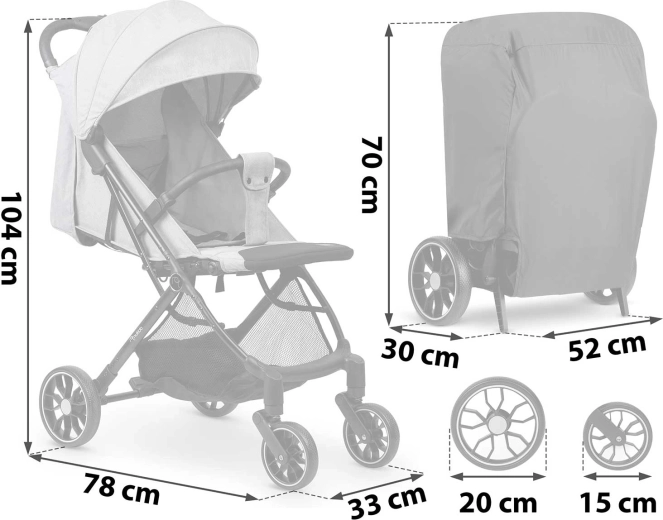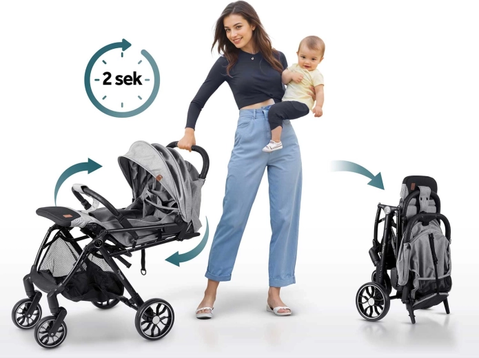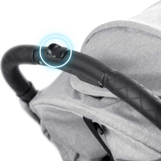 Butonul intuitiv permite plierea rapidă și sigură a căruciorului – ideală pentru transportul public, mașină sau la poarta avionului. După pliere este compact și ușor de transportat.