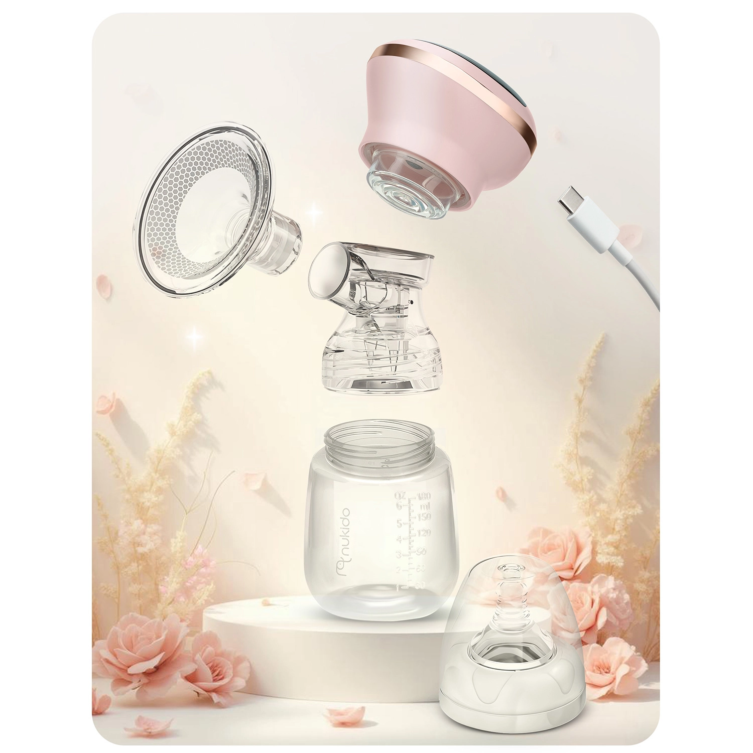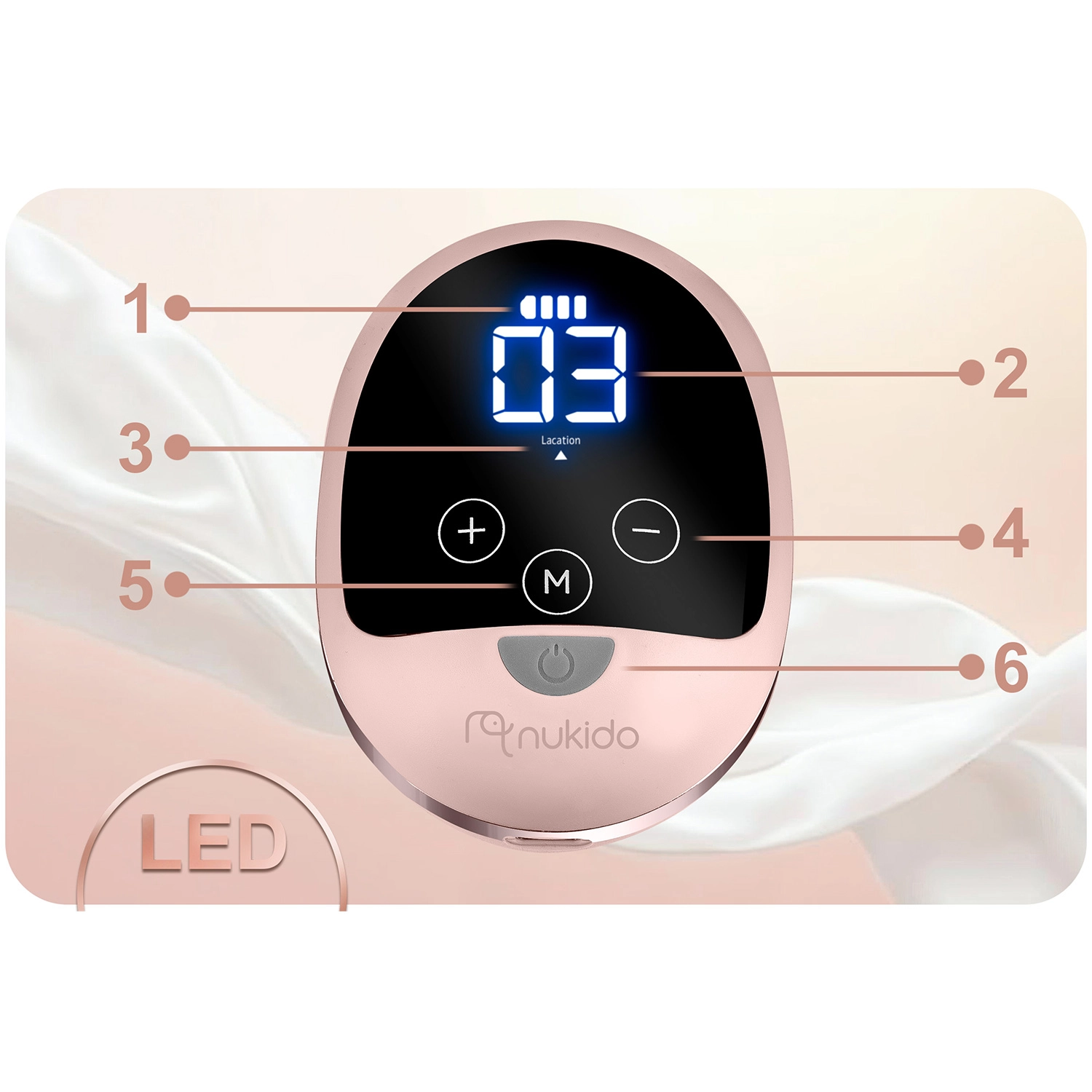 Pompa de sân Nukido este concepută pentru o extragere confortabilă și eficientă oricând și oriunde. Trei faze inteligente de aspirație (stimulare, aspirație lentă și profundă, finalizare în profunzime) cu până la 9 niveluri de setare susțin delicat lactația și imită ritmul natural al bebelușului. Ecranul LED lizibil, cu control tactil, afișează faza, intensitatea și starea bateriei, astfel încât aveți totul sub control chiar și noaptea.