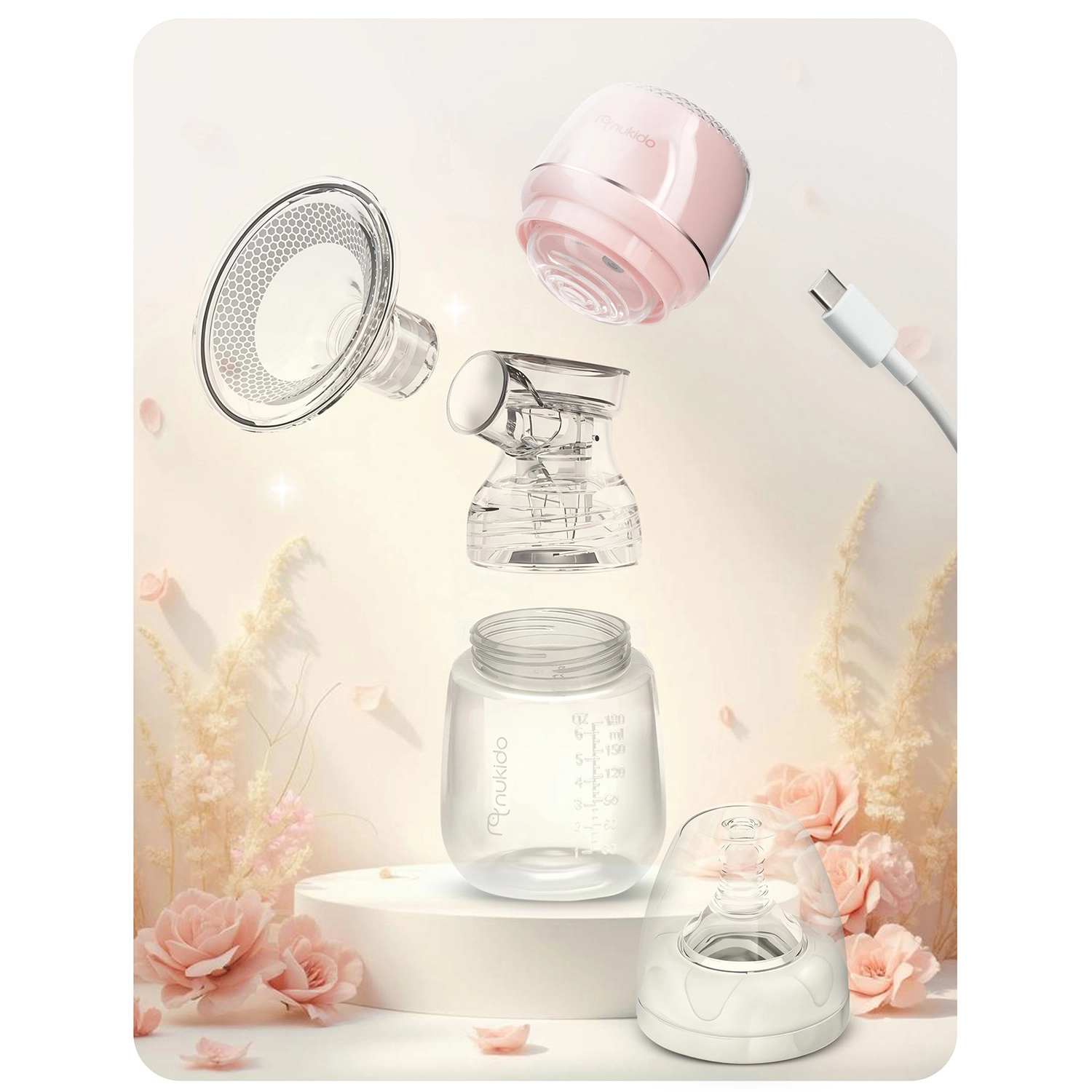 Pompa NUKIDO este concepută pentru o extracție confortabilă, eficientă și delicată, oricând și oriunde. Tehnologia redă fidel ritmul natural de supt al bebelușului în trei faze, astfel încât atât stimularea, cât și extracția sunt naturale și eficiente. Datorită celor 9 niveluri de reglaj îți ajustezi ușor puterea de aspirație nevoilor tale, în timp ce funcționarea silențioasă nu deranjează somnul copilului.