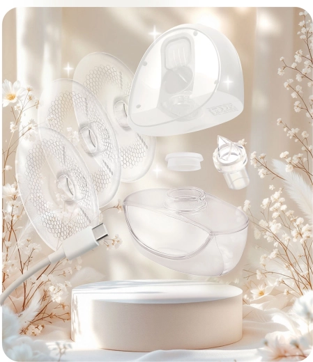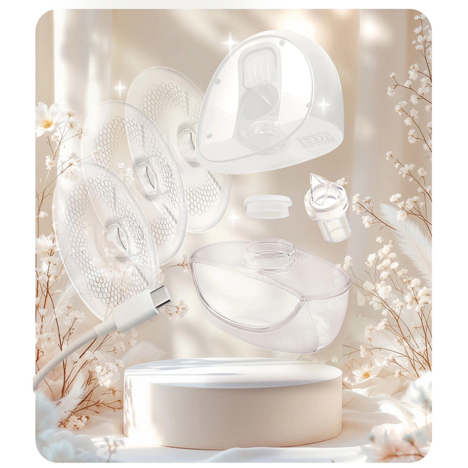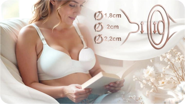 Datorită funcționării fără fir și încărcării prin USB‑C, poți lua pompa ușor la serviciu, în călătorii sau pentru momente de relaxare. Pernuțele de masaj din silicon în trei mărimi stimulează delicat fluxul de lapte și oferă o ușurare plăcută. Recipientul de 150 ml are dop de siguranță împotriva vărsării. Toate piesele nemotorizate pot fi spălate în mașina de spălat vase, economisind timp și asigurând igienă ridicată.