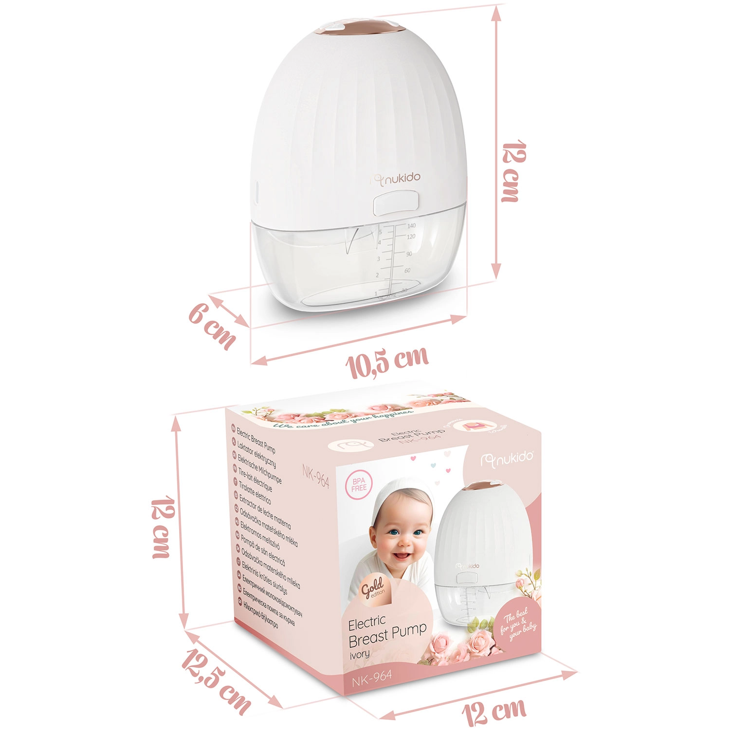 Pompă electrică NUKIDO cu ritm de aspirație în trei faze, oferă o extragere confortabilă, eficientă și nedureroasă a laptelui matern. Dispune de 9 niveluri de stimulare, control tactil, afișaj LED și funcționare fără fir pe baterie Li‑ion integrată. În pachet găsiți 3 mărimi de pernuțe de masaj și un recipient de 150 ml cu protecție împotriva vărsării. Materialele sunt fără BPA și potrivite pentru utilizare igienică de zi cu zi.