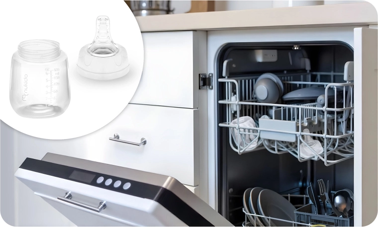 Gâtul larg facilitează umplerea și curățarea, iar componentele pot fi spălate la mașina de vase sau manual pentru igienă maximă.