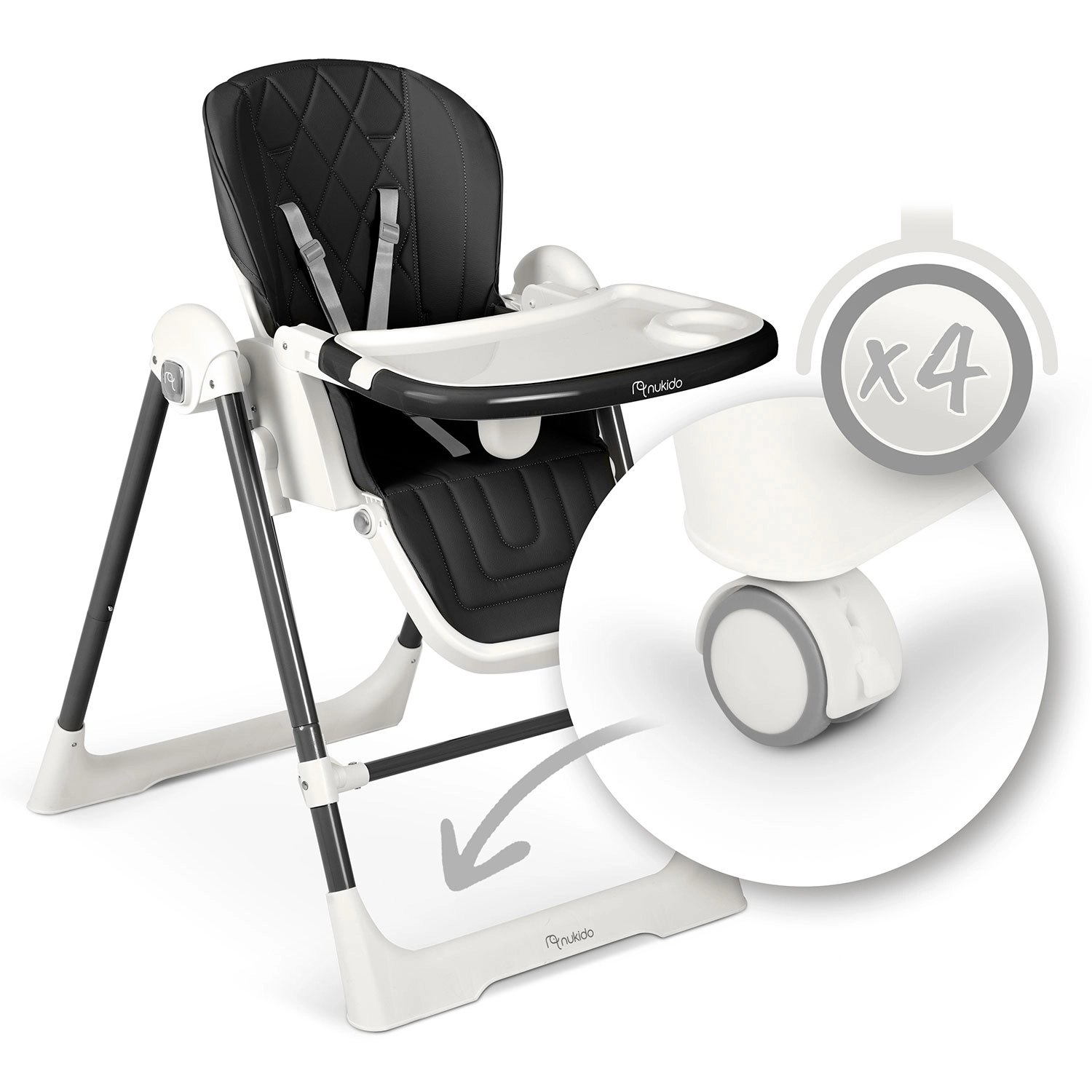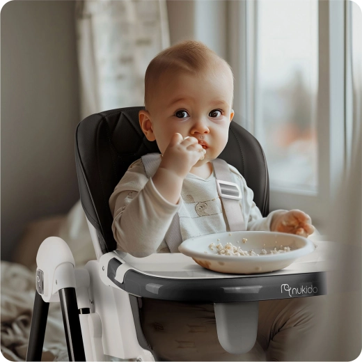 Căutați un scaun care să facă față hrănirii, jocului și odihnei? Nukido Elite negru îmbină trei produse într-unul: hrănire comodă la masă, legănat liniștitor și relaxare într-un șezlong reglabil încă de la naștere. Datorită reglării line a spătarului, înălțimii și suportului pentru picioare, adaptați cu ușurință poziția la creșterea și nevoile copilului.