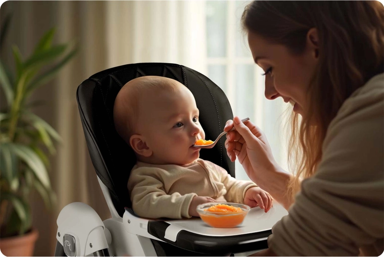 Un singur ajutor pentru fiecare zi: hrănire confortabilă, odihnă liniștită și legănat delicat. Înclinarea lină a spătarului până la poziția întins asigură confort încă de la naștere.