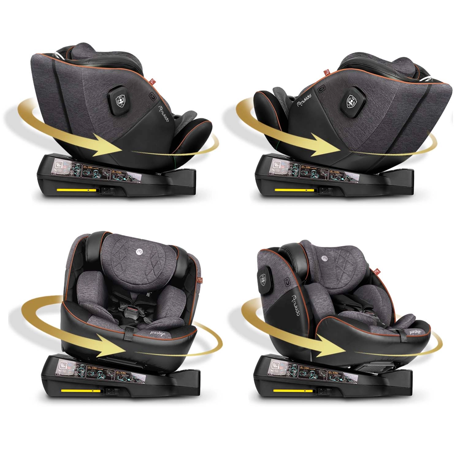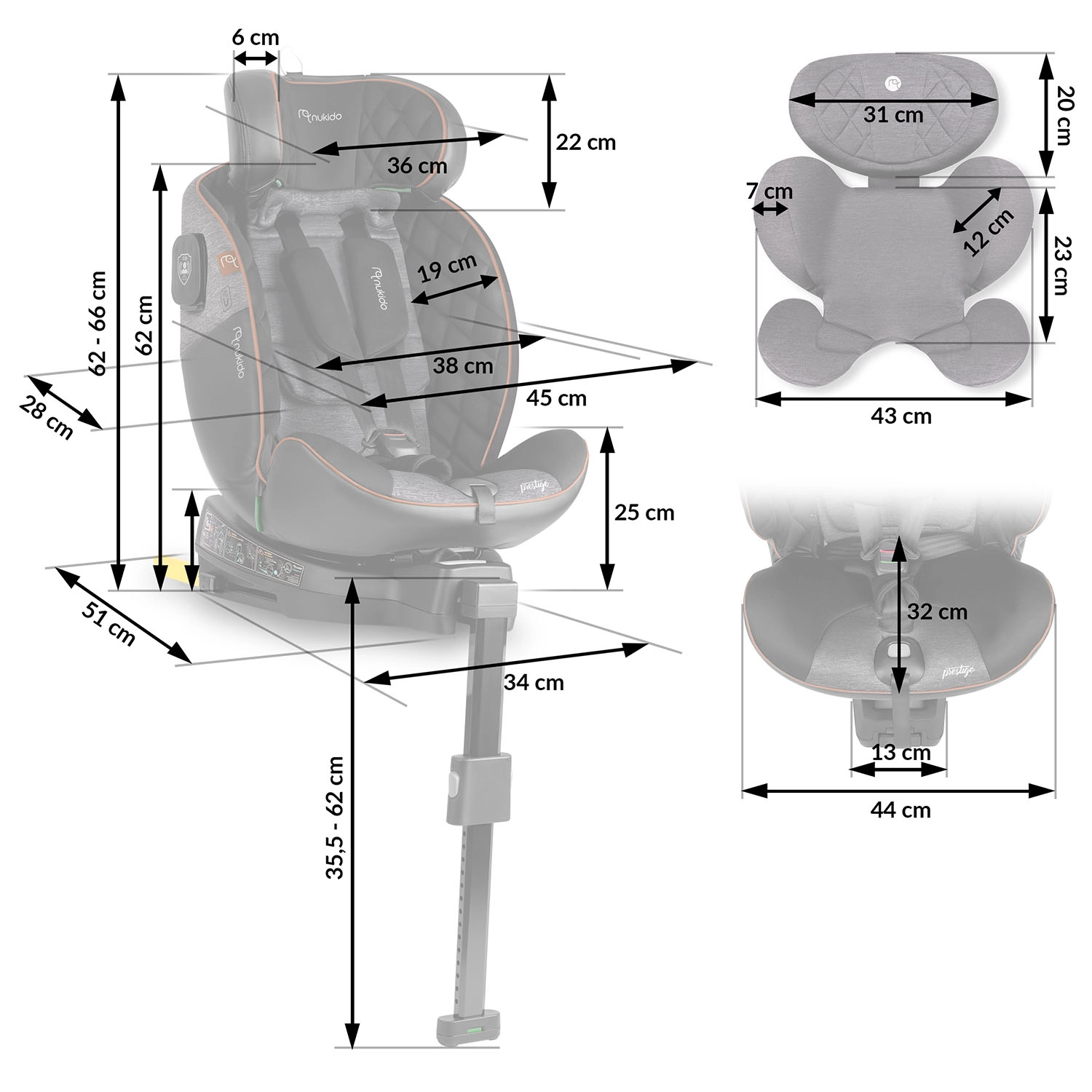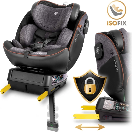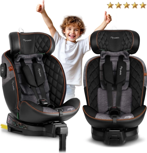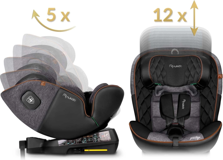 Scaunul auto Nukido Prestige Line este proiectat conform normei ECE R129 i-Size pentru înălțimi de 40–150 cm și însoțește copilul de la naștere până în jurul vârstei de 12 ani. Datorită bazei rotative 360°, fixați cu ușurință copilul lateral către ușă, apoi blocați scaunul în poziția dorită. SIP – Side Impact Protection cu panouri laterale ranforsate protejează capul, gâtul și coloana la impact lateral, în timp ce ISOFIX și piciorul de stabilizare asigură montare fermă și rapidă.