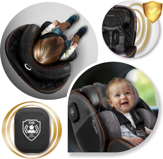 Panourile laterale ranforsate cu sistem SIP absorb energia impactului în cazul unei coliziuni laterale. Ancorarea fermă ISOFIX cu picior de stabilizare sporește stabilitatea și reduce riscul unei instalări greșite.