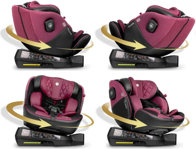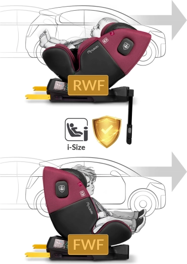 Întorci pur și simplu scaunul spre ușă, fixezi copilul fără a-ți răsuci spatele și dintr-o mișcare alegi RWF sau FWF. Posibilitatea de blocare în 4 poziții crește confortul și siguranța.