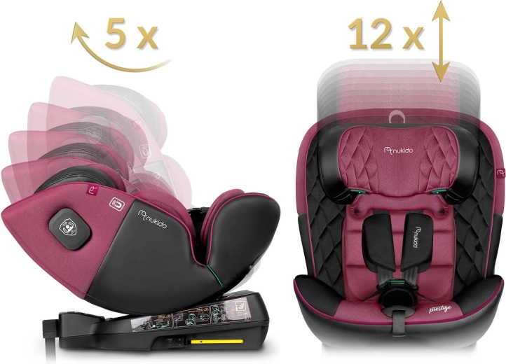 Oferă-i copilului tău siguranță și confort într-un singur scaun auto care crește de la naștere până la 12 ani. Modelul Nukido Prestige Line respectă strictul standard ECE R129 i‑Size, are bază rotativă 360° pentru așezare ușoară, ISOFIX și picior de stabilizare. Datorită protecției laterale SIP, tetieră reglabilă în 12 poziții, centuri în 5 puncte și căptușelii moi matlasate, asigură o călătorie sigură și confortabilă în fiecare zi.