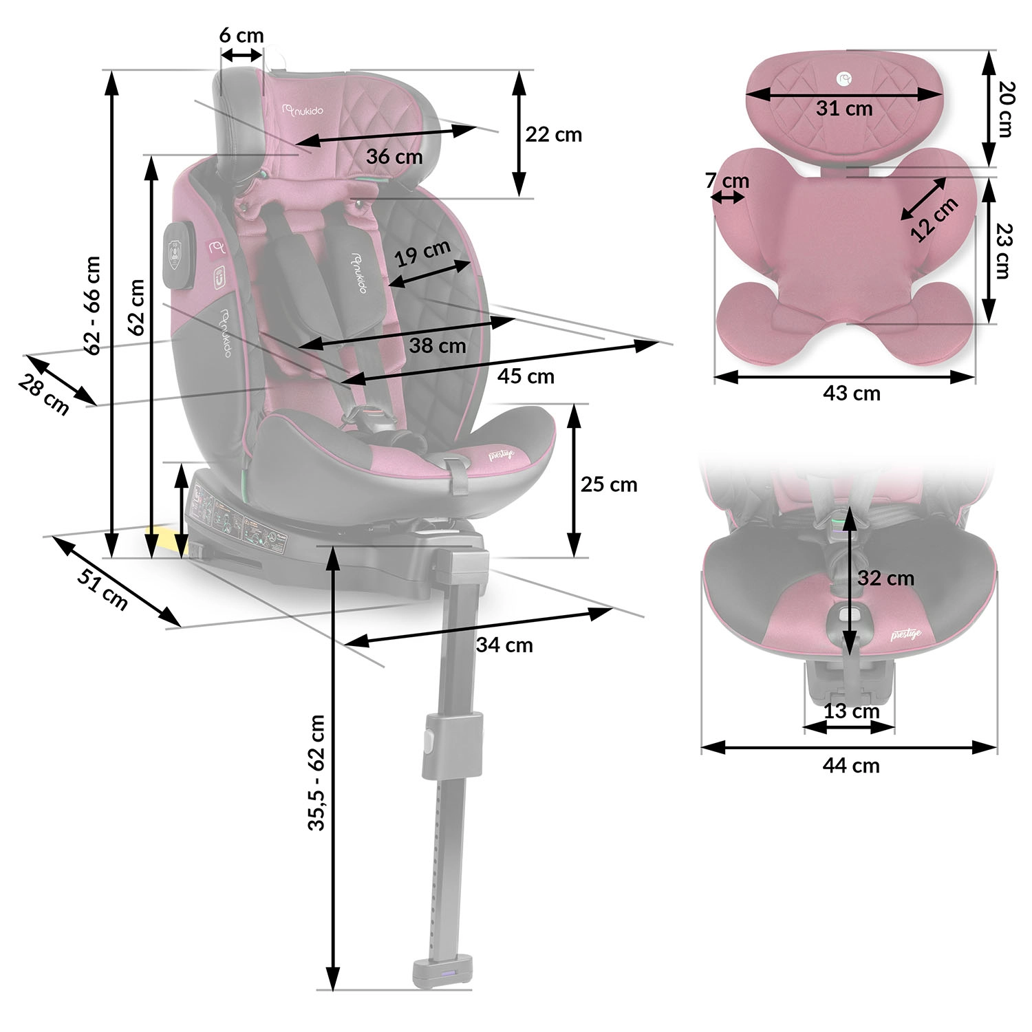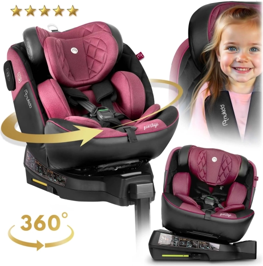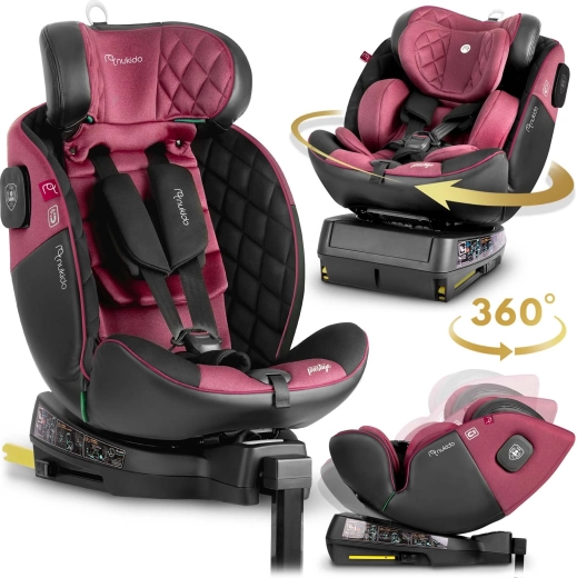 Scaunul auto Nukido Prestige Line este proiectat pentru siguranță și confort maxime, pentru înălțimi între 40 și 150 cm. Sistemul rotativ 360° îți permite să fixezi copilul lateral, spre ușă, și să alegi călătoria cu spatele la sens (RWF) până la 105 cm sau cu fața la sens (FWF) pentru copiii mai mari. ISOFIX și piciorul de stabilizare oferă ancorare fermă, în timp ce SIP sporește protecția capului, gâtului și coloanei la impact lateral.