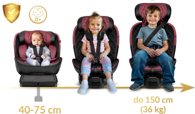 - Domeniu i‑Size 40–150 cm – un singur scaun de la naștere până la cca 12 ani.