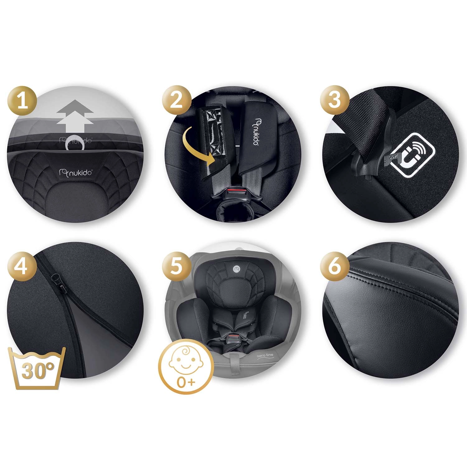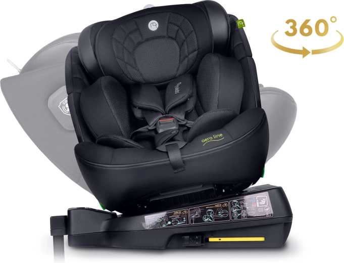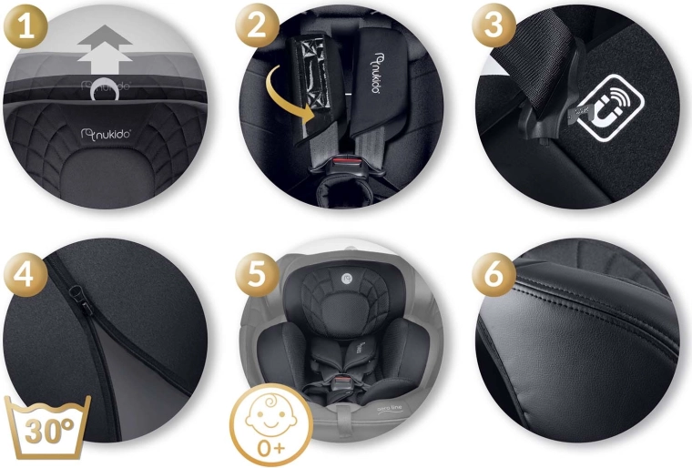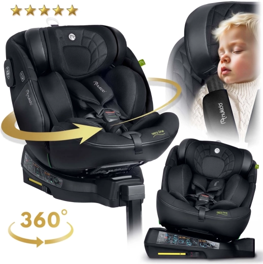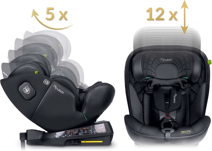 NUKIDO Aero Line este un scaun auto premium care combină cele mai înalte standarde de siguranță i-Size cu confort pe termen lung, de la naștere până la aproximativ 12 ani. Datorită sistemului rotativ la 360°, fixezi ușor copilul din lateral și alegi direcția de mers RWF/FWF în funcție de vârstă și înălțime. Tapițeria moale matlasată, forma ergonomică și inserția pentru nou-născut asigură confort chiar și la drumuri lungi.