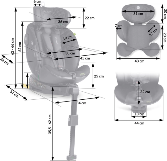 SIP – Side Impact Protection avansat cu amortizoare laterale de energie, piciorul de sprijin și ancorele ISOFIX robuste oferă stabilitate și protecție la impact. Tetieră cu 12 poziții care crește odată cu copilul, 5 poziții de înclinare pentru confort sporit la somn și centuri în 5 puncte cu protecții antialunecare care rămân ferm pe poziție. Husa detașabilă se poate spăla pentru întreținere ușoară.