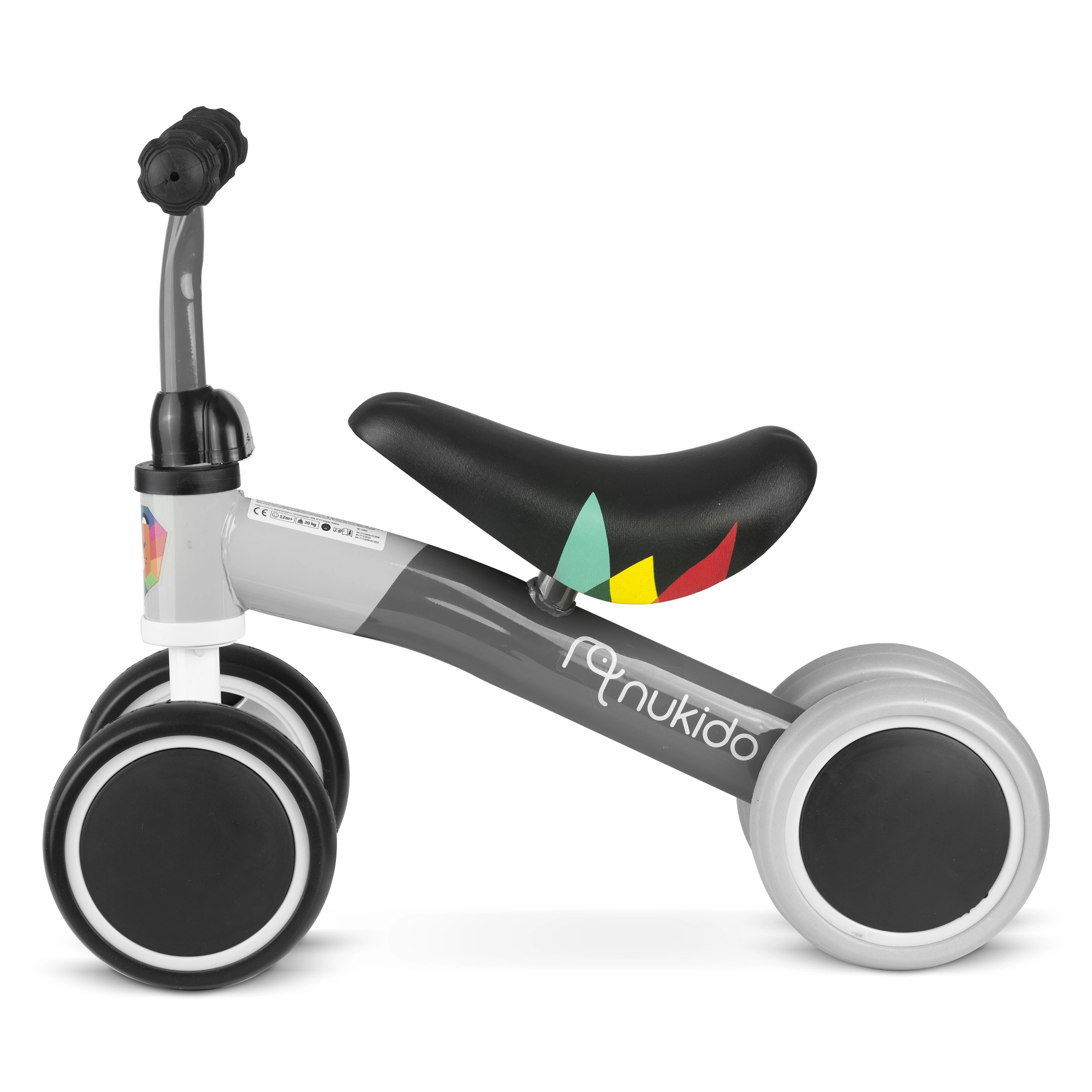 Trotineta de împins cu 4 roți NUKIDO este o alegere excelentă pentru primele plimbări ale copilului tău. Datorită cadrului jos și platformei stabile cu patru roți, micii rideri se pot împinge ușor, își antrenează echilibrul și capătă încredere. Construcția metalică asigură durabilitate, în timp ce șaua capitonată și gripurile din cauciuc cu opritoare sporesc confortul și siguranța.