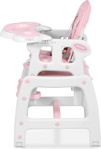 Scăunelul de masă pentru copii practic și stilat 5-în-1 RICOKIDS Sinco, în culoarea roz, crește odată cu copilul tău de la 6 la 36 de luni. Oferă cinci configurații pentru hrănire, joacă și învățare, are husă ușor de curățat din piele ecologică, tăviță detașabilă și centuri în 5 puncte. Datorită roților cu frână îl poți muta ușor, iar înclinarea reglabilă a spătarului asigură confort la masă și în timpul odihnei.