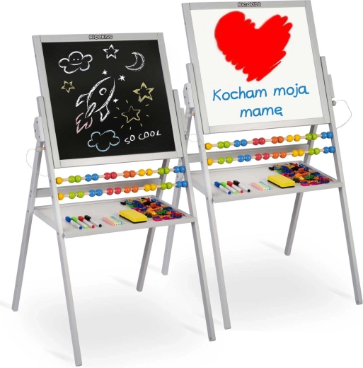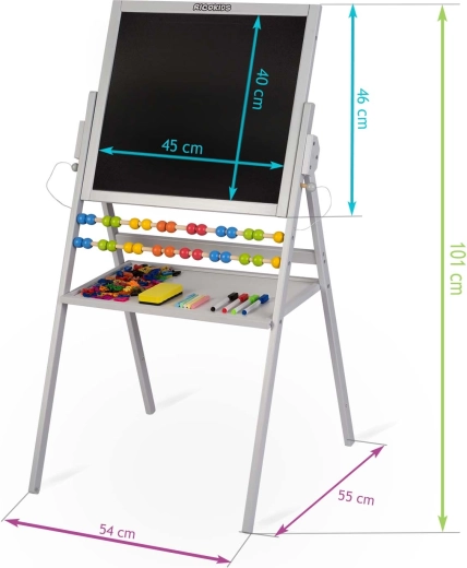 Tabla dublă RICOKIDS este un instrument ideal pentru învățare creativă acasă și la grădiniță. O parte este magnetică pentru lucru cu magneți și markere, cealaltă este pentru cretă pentru desen clasic. Include și un abac, care sprijină într-un mod ludic primele noțiuni de matematică.