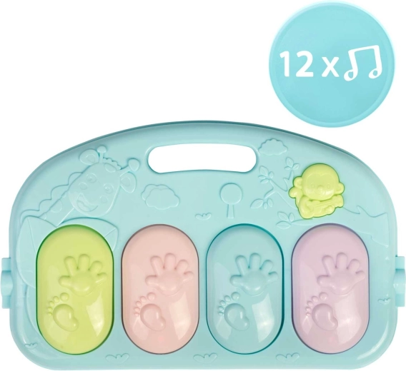 Clapele colorate reacționează la atingere și lovituri cu piciorul, se aprind și redau 12 melodii. Pianul poate fi scos din saltea și folosit separat sau ca măsuță muzicală.