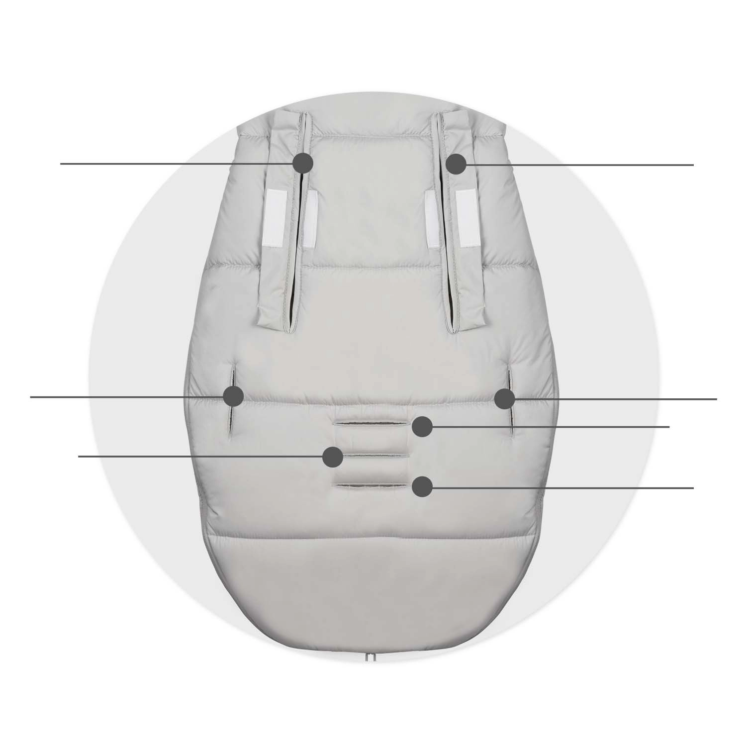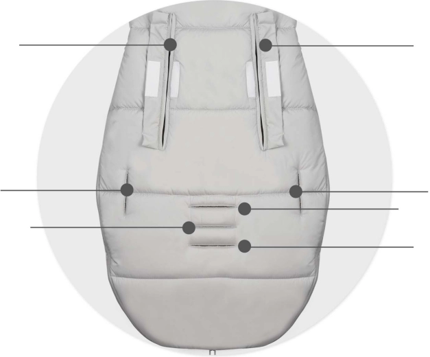Compatibil cu centuri în 2/3/5 puncte și echipat cu element antialunecare. Se potrivește ușor în majoritatea cărucioarelor și rămâne stabil chiar în timpul mersului.