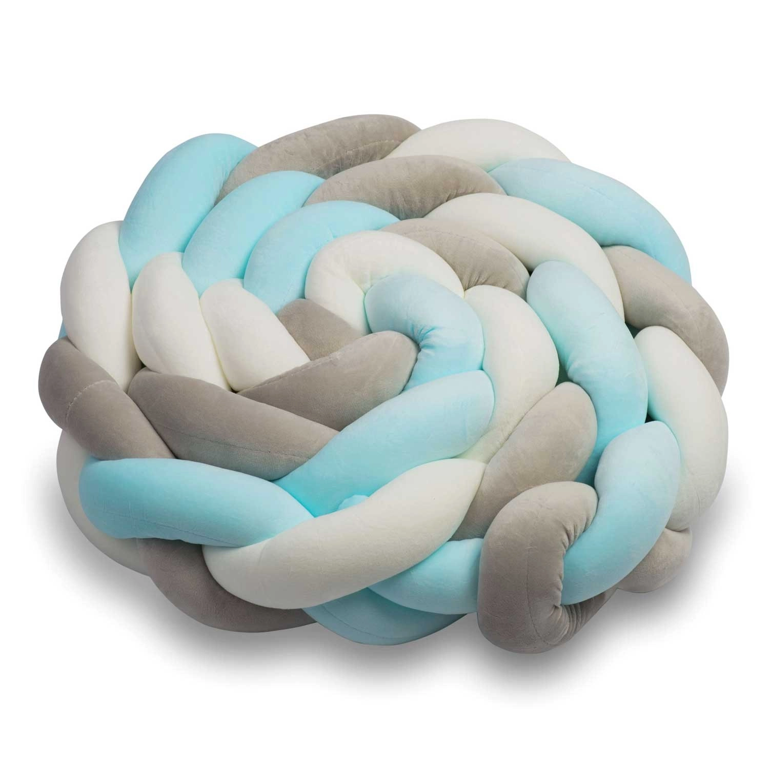 Combinația modernă albastru‑gri îl transformă într-un accesoriu frumos pentru pătuț și interior.