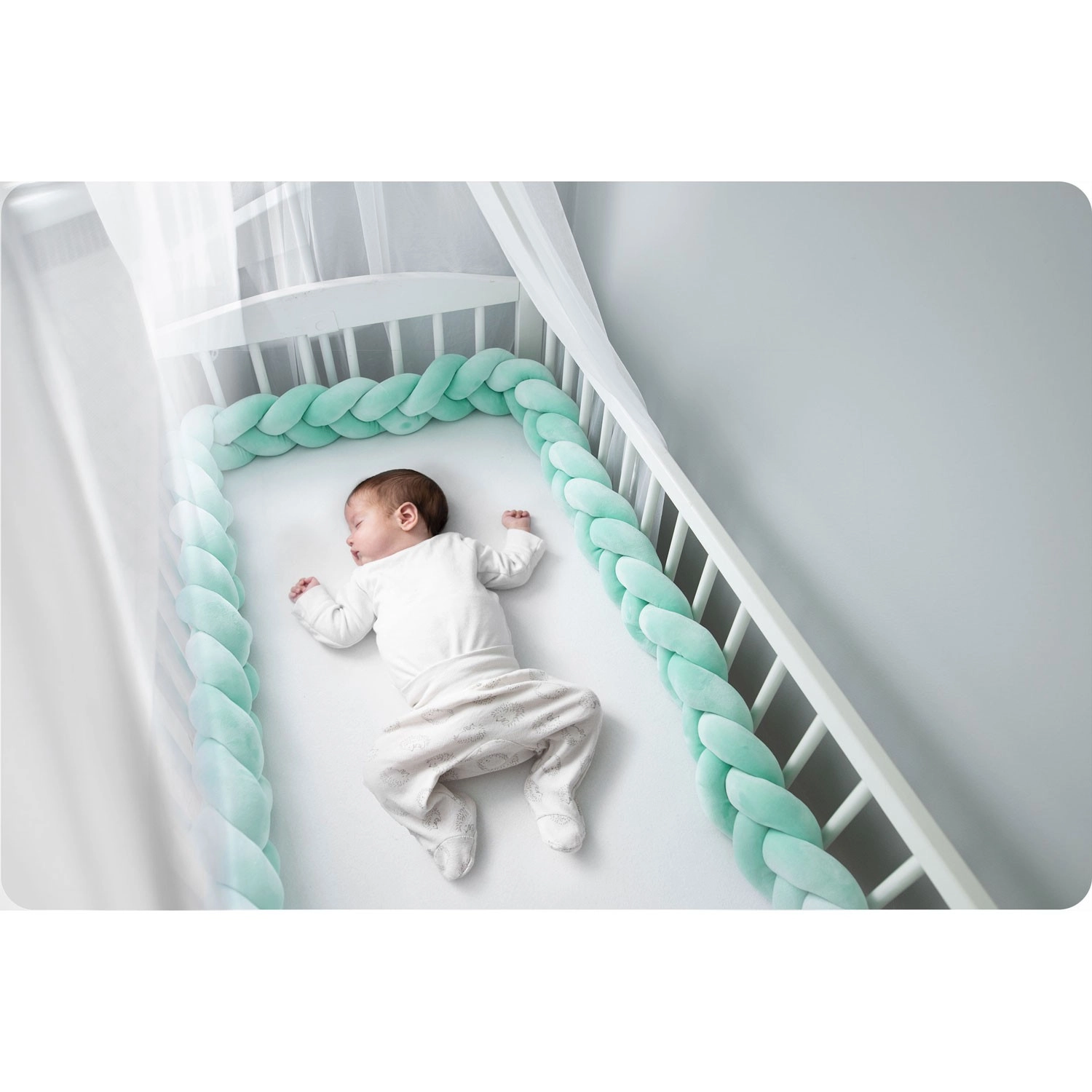 Protectorul împletit, stilat și funcțional, creează pentru bebelușul dvs. un mediu sigur și confortabil încă din primele zile. Datorită împletiturii moi, atenuează eficient loviturile de barele pătuțului, previne prinderea mânuțelor și piciorușelor și în același timp protejează de curent și de frigul de la perete.