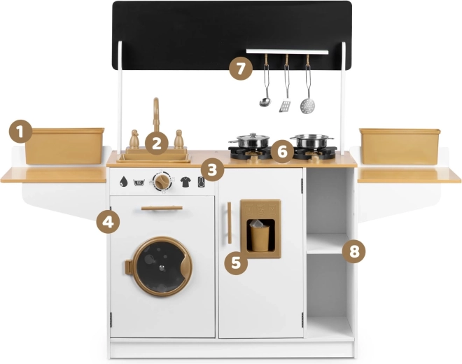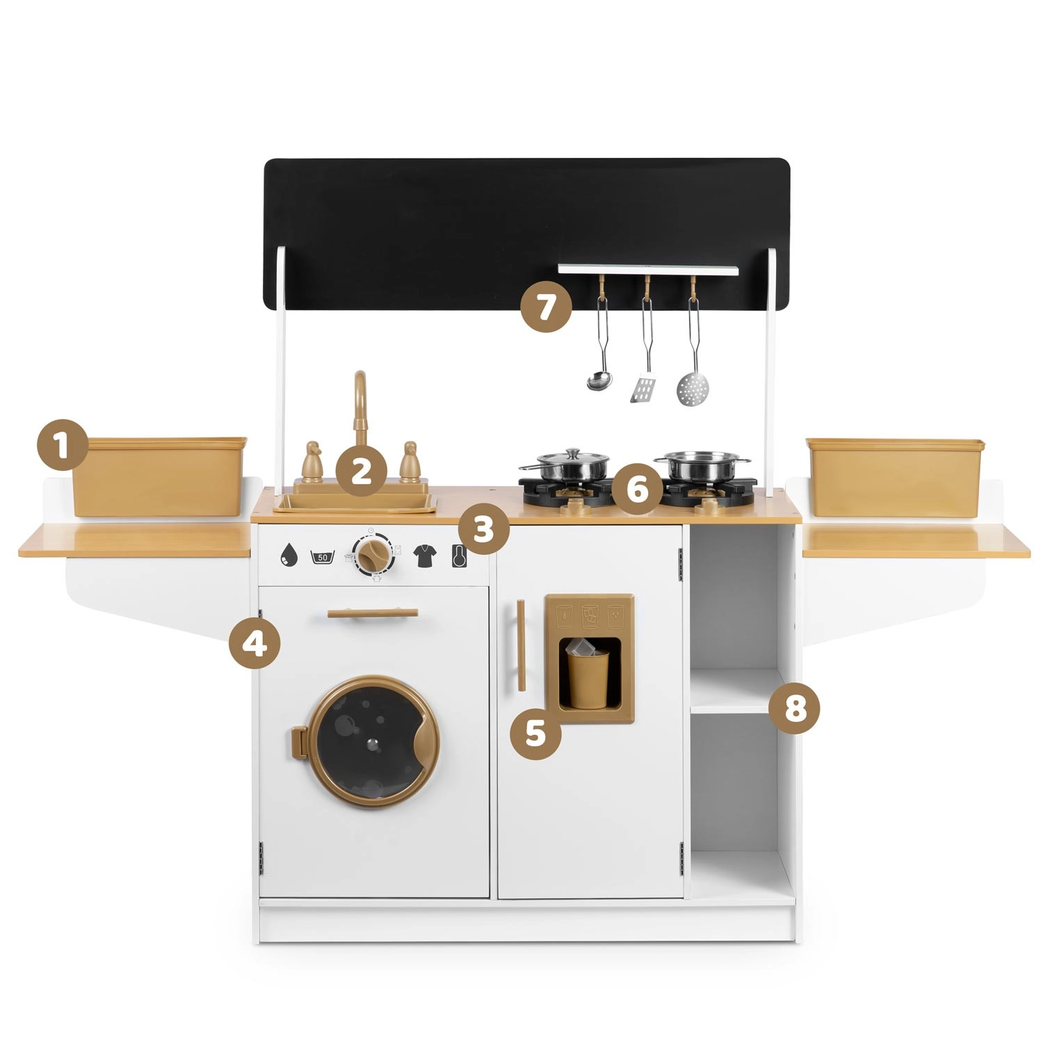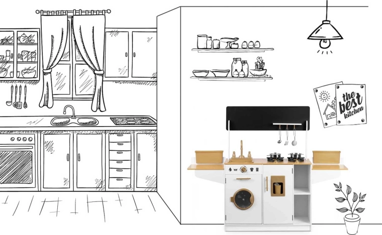 Jocul susține dezvoltarea autonomiei, abilităților sociale și învățarea prin imitarea adulților. Datorită organizării gândite și rafturilor de depozitare, copiii au totul la îndemână, iar bucătăria rămâne ordonată.