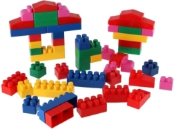 Setul de construcție Lori 3 oferă un mix de cărămizi mici, medii și mari, cu ajutorul cărora copiii pot construi cu ușurință case, turnuri și propriile creații originale. Piesele sunt ușoare, rezistente și plăcute la atingere – ideale pentru primele încercări de construit.
