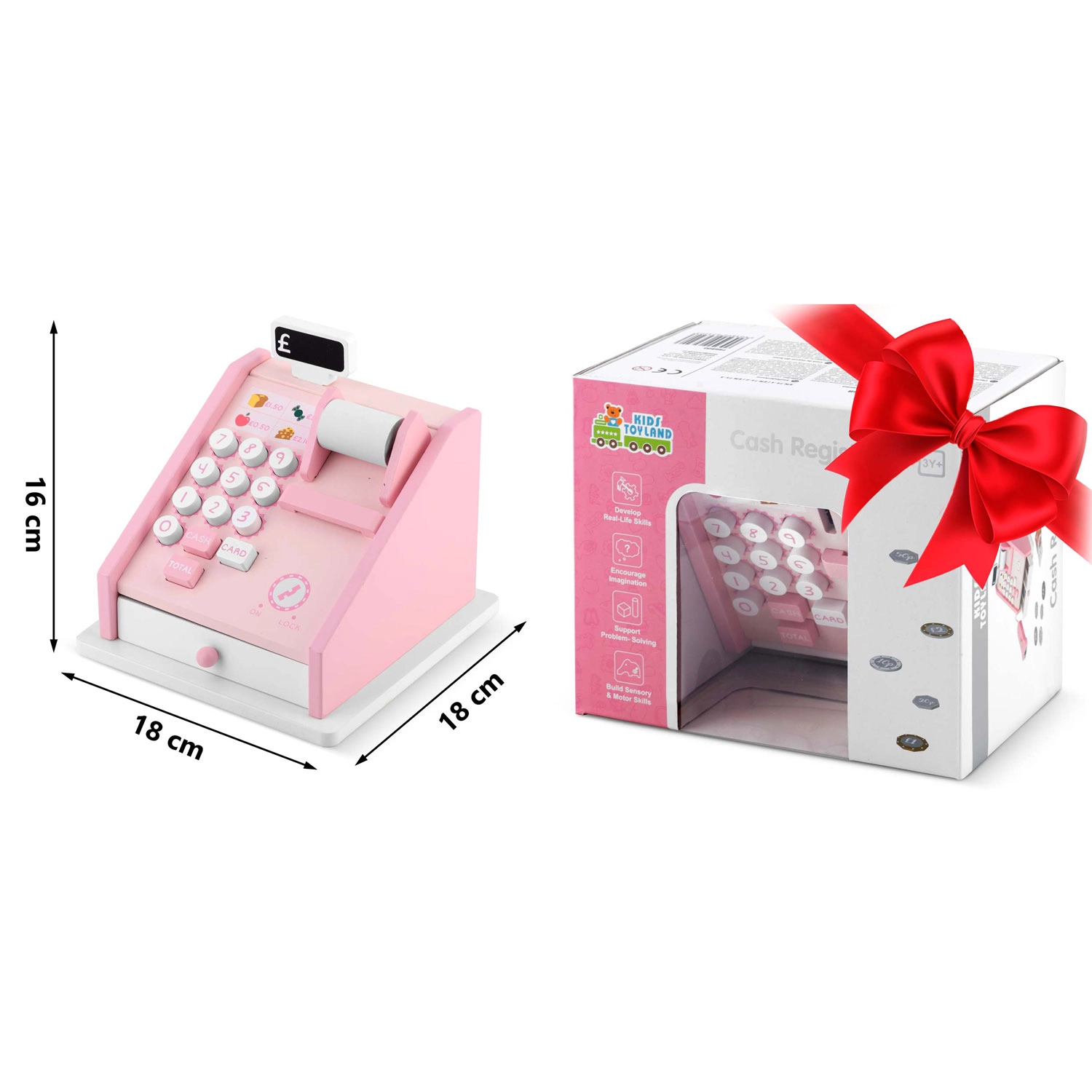 Casa de marcat din lemn RICOKIDS este pregătită pentru ore îndelungate de distracție creativă. Copiii pot tipări chitanțe, scana produsele, plăti în numerar sau cu cardul și, în același timp, să învețe bazele matematicii și ale comunicării sociale. Construcția robustă din lemn și vopselele sigure asigură durabilitate îndelungată și utilizare în siguranță.