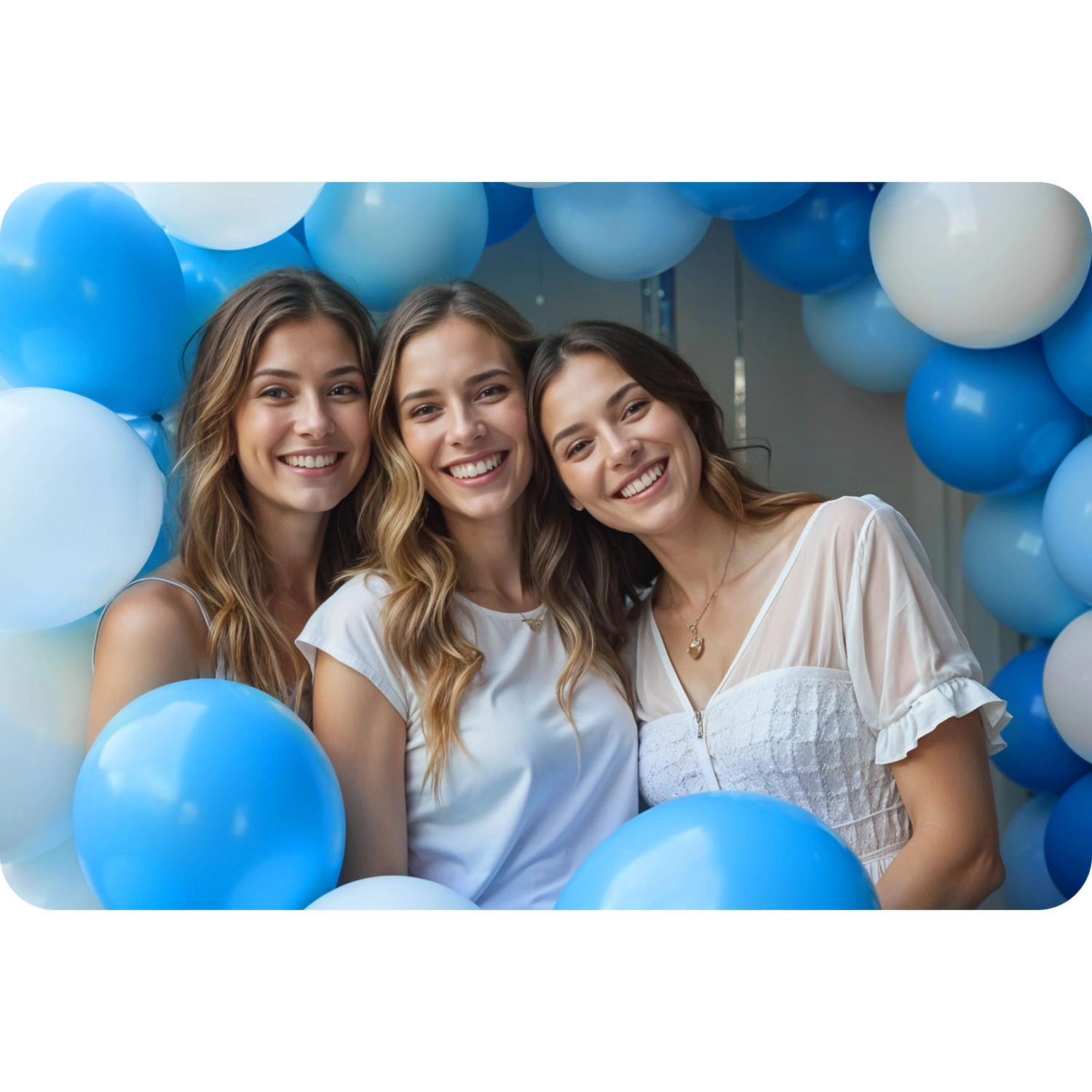 Baloanele în diverse tonuri de albastru și alb transformă rapid spațiul într-un fundal superb pentru fotografiile invitaților.