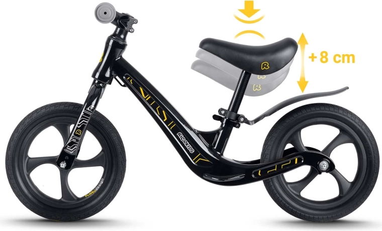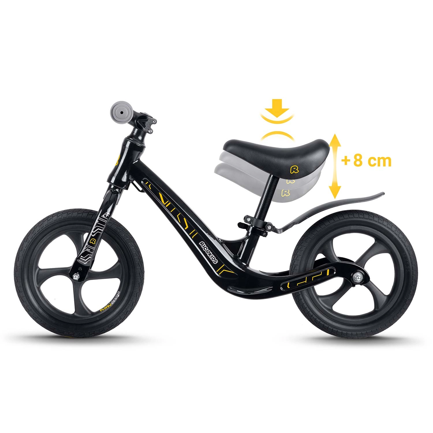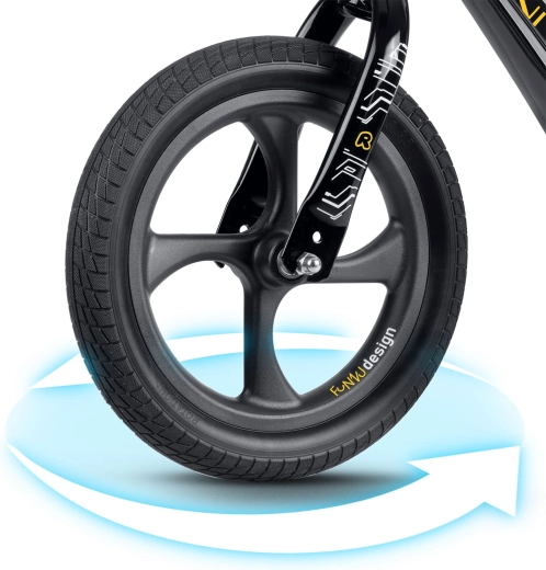 Ricokids Funnu este o bicicletă de echilibru pentru copii, concepută pentru învățarea confortabilă a mersului fără pedale. Datorită cadrului din magneziu ultraușor se transportă ușor, iar șa ergonomică, moale cu reglare lină oferă poziția perfectă pe măsura creșterii copilului. Roțile din spumă EVA nu necesită întreținere, sunt imposibil de perforat și atenuează excelent denivelările – fără risc de pană.