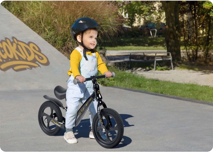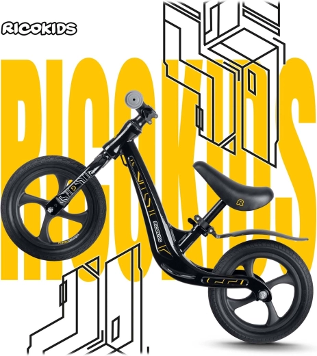 Bicicleta de echilibru Ricokids Funnu, ușoară și manevrabilă, îi ajută pe copii să-și dezvolte echilibrul și coordonarea. Oferă un cadru din magneziu, înălțime reglabilă a șeii (35–42 cm), roți de 12" din EVA, imposibil de perforat și mânere din cauciuc cu opritoare pentru o prindere sigură. Ideală pentru primele plimbări în parc și pe terenul de joacă – rezistentă, silențioasă și ușor de întreținut.