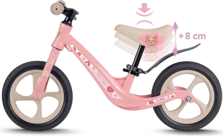 RICOKIDS FUNNU este o bicicletă de echilibru creată pentru micii exploratori care vor să se deplaseze fără limite. Cadrul ultraușor din aliaj de magneziu ușurează manevrarea pentru copii și părinți, în timp ce roțile EVA fără întreținere garantează o rulare lină, fără pene, pe iarbă, asfalt și pietriș. Datorită înălțimii șeii reglabile lin, bicicleta crește împreună cu copilul tău.
