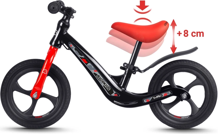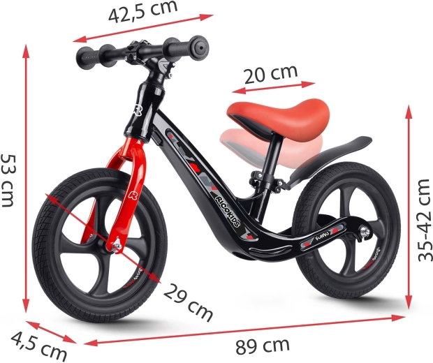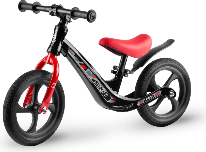 Ricokids Funnu este o bicicletă de echilibru fiabilă, concepută pentru o trecere lină către bicicleta clasică. Construcția ultra-ușoară din magneziu ușurează transportul și crește manevrabilitatea, în timp ce roțile EVA fără întreținere oferă o rulare silențioasă și stabilă pe iarbă, asfalt și pietriș. Înălțimea reglabilă a șeii 35–42 cm crește odată cu copilul și oferă confort în fiecare etapă de dezvoltare.