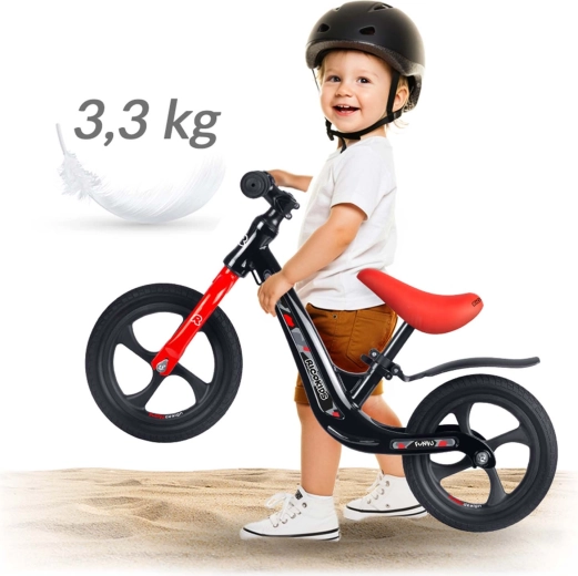 Structura din magneziu este robustă și totodată foarte ușoară, astfel bicicleta de echilibru se manevrează și se transportă cu ușurință. Ideală pentru micii rideri și pentru părinți în deplasare.