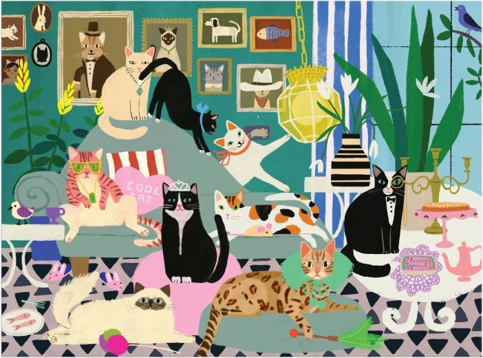 După asamblare, rezultă o imagine decorativă de 68,6 × 50,8 cm, care va arăta grozav pe perete sau pe o etajeră. Puzzle-ul este un cadou excelent pentru iubitorii de pisici, pentru momente în familie sau ca alegere elegantă pentru relaxare după o zi solicitantă.