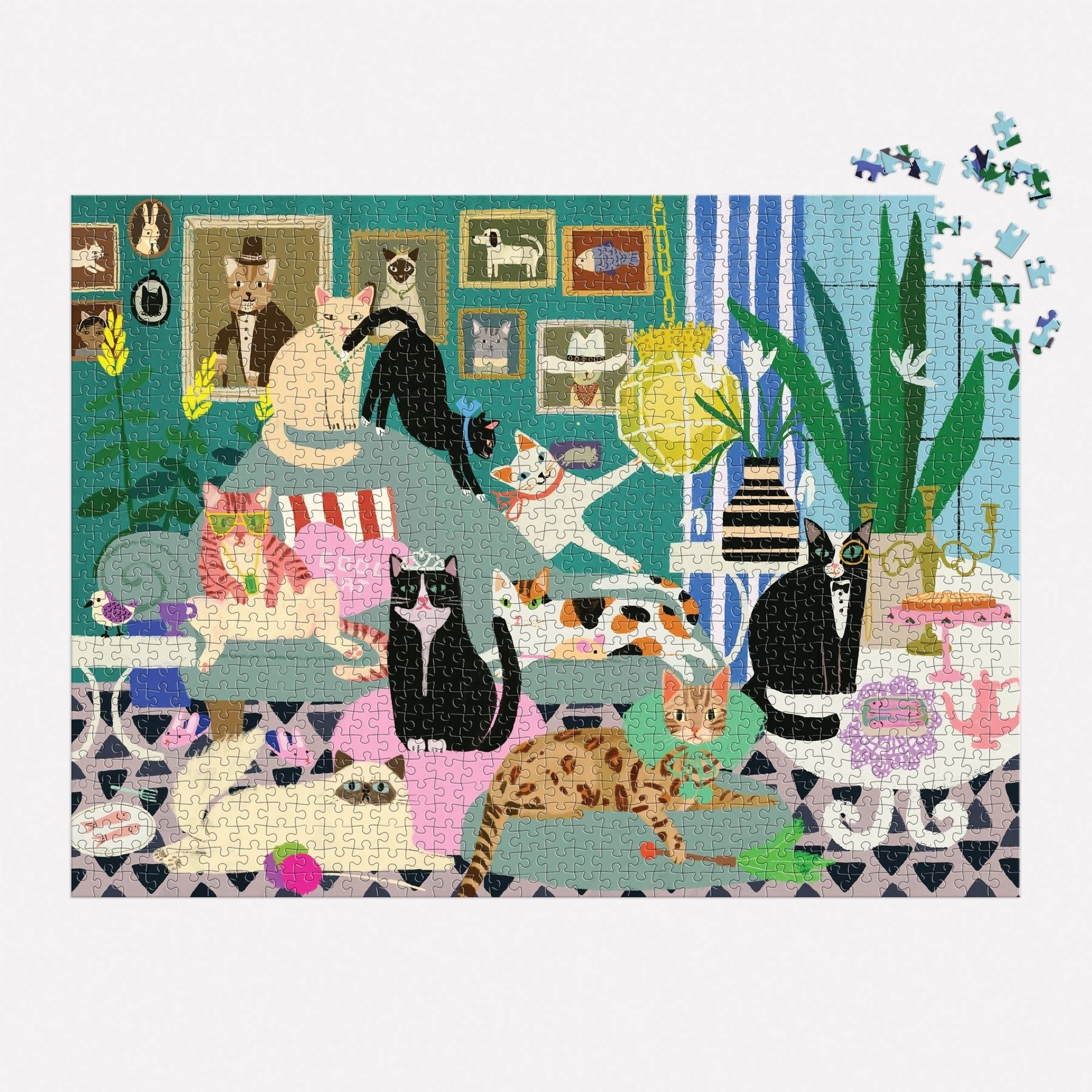 Elegantul puzzle GALISON oferă o calitate excelentă și o ilustrație fermecătoare, plină de detalii care îi vor încânta pe iubitorii de pisici. Datorită celor 1000 de piese tăiate cu precizie, te vei bucura de ore îndelungate de relaxare și de antrenarea concentrării. Imaginea-ghid a motivului inclusă te ajută să te orientezi în zonele colorate și în detaliile fine.