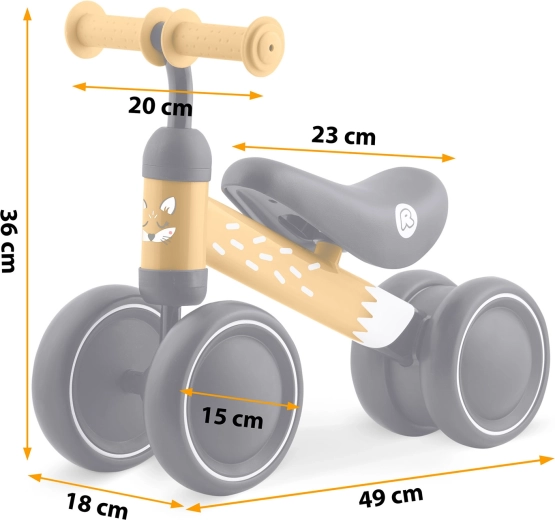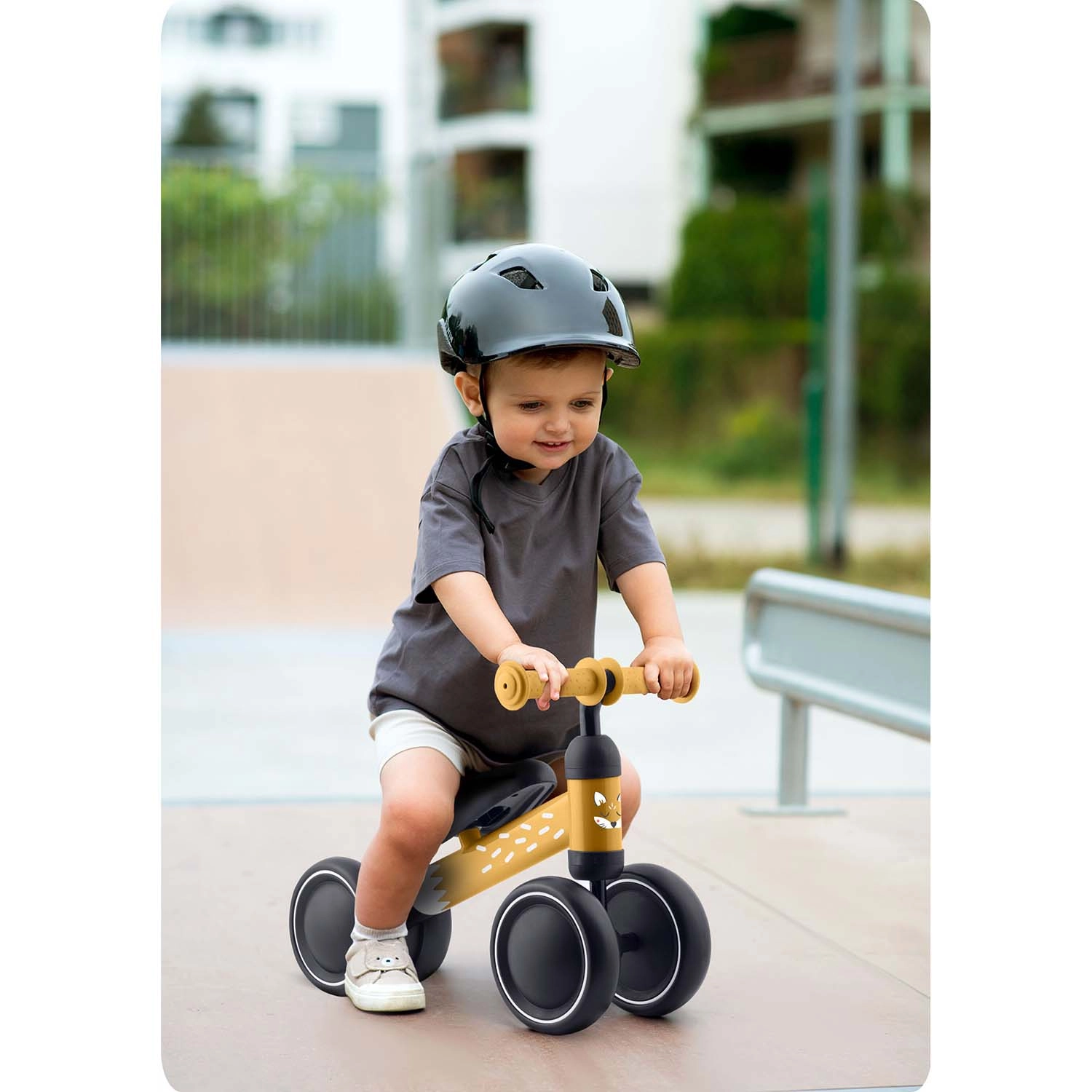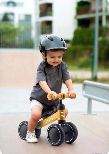 Varianta cu patru sau trei roți, cu roți late, oferă stabilitate excelentă atât în interior, cât și în exterior și ajută la dezvoltarea echilibrului și coordonării.
